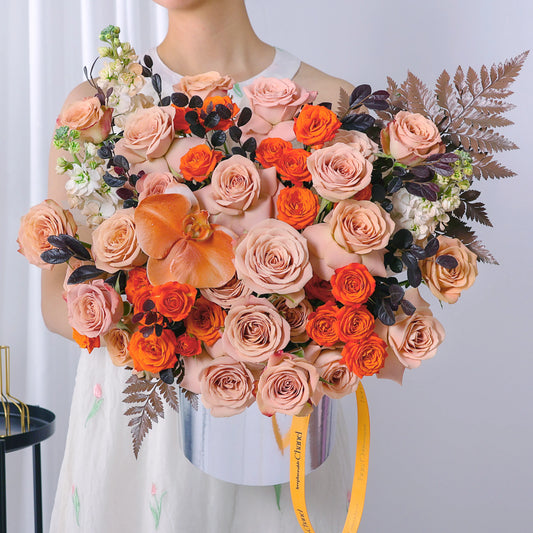 漫野序秋|卡布奇諾橙泡泡白羅蘭混搭鮮花桶