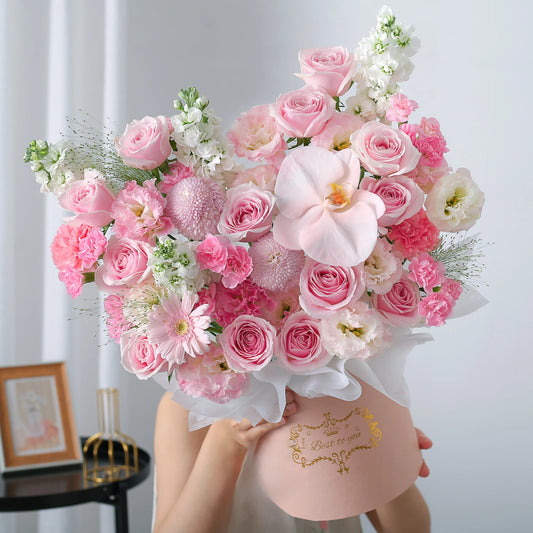 溫柔絮語|粉雪山康乃馨桔梗混搭鮮花花桶