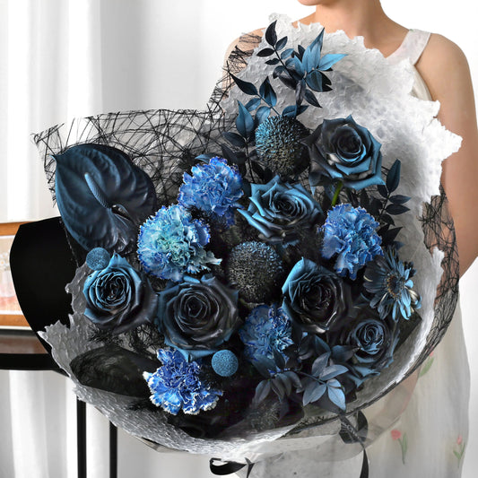 藍焰之吻|藍掌曼塔九星葉混搭鮮花束定價 HK$598.00定價單價 每-