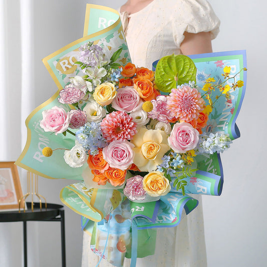 彩虹花集|粉雪山紫玫瑰碎冰藍橙玫瑰混搭鮮花束
