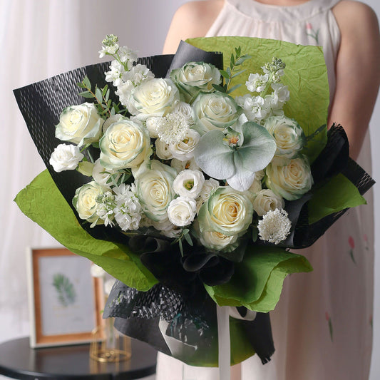 青山綠水|曼塔白玫瑰混搭鮮花束定價 HK$628.00定價單價 每-