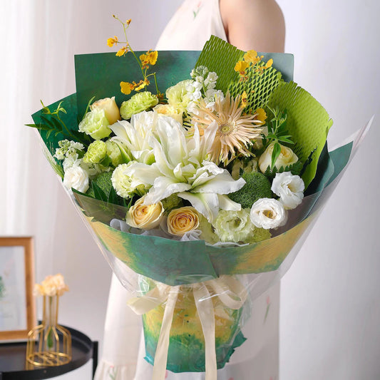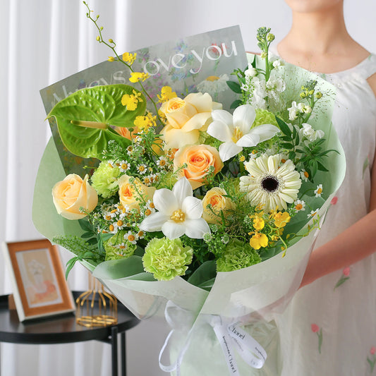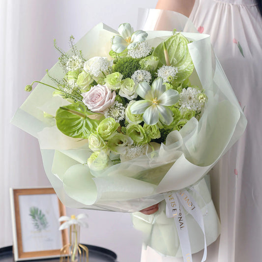 清風自來|白玫瑰水仙康乃馨混搭鮮花束定價 HK$628.00定價單價 每