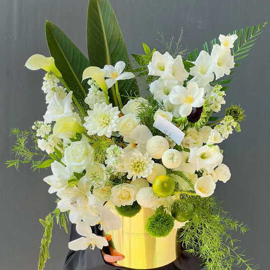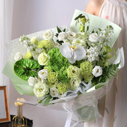 白玫瑰白蝴蝶蘭蘇格蘭綠混搭鮮花束|梵高花園定價 HK$578.00定價單價 每-