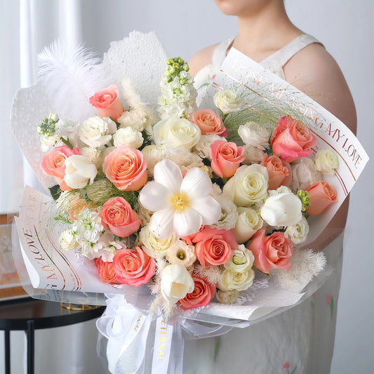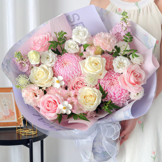 粉霧漫心|粉雪山白玫瑰雪混搭鮮花束定價 HK$608.00定價單價 每-