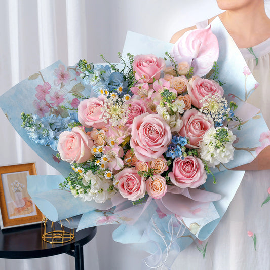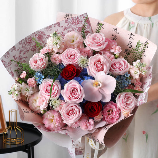 蝴蝶自來|藍繡球蝴蝶蘭粉玫瑰混搭鮮花束定價 HK$628.00定價單價 每-