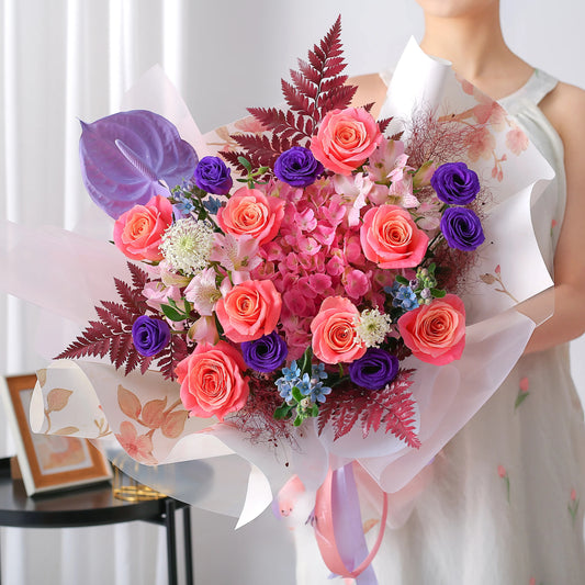 蝶嶼情書|紫霞仙子氣場玫瑰混搭鮮花束定價 HK$598.00定價單價 每-