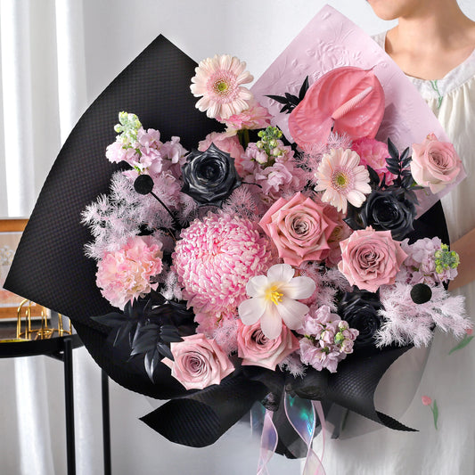 粉玫瑰紅掌混搭鮮花束|如約而至