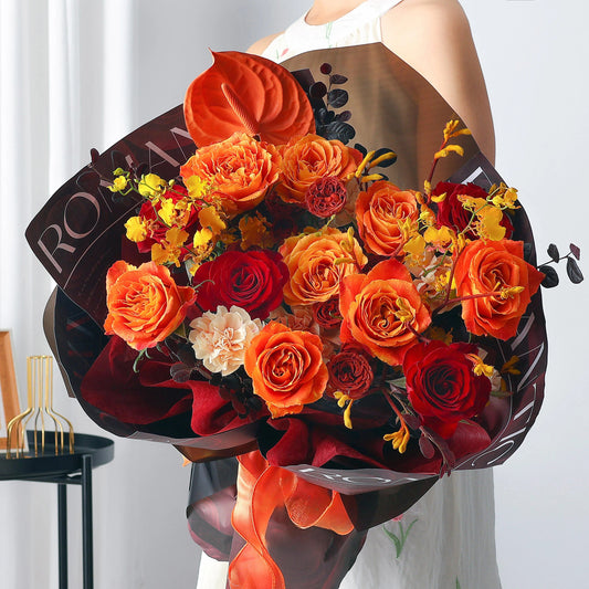 紅玫瑰歡樂頌紅掌混搭鮮花束|花團錦簇