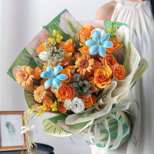 香檳玫瑰橙玫瑰混搭鮮花束|落日晚風
