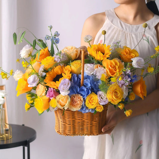 落日熔金|向日葵輝煌玫瑰混搭鮮花花籃