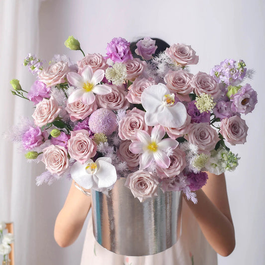 紫色花園|曼塔鬱金香蝴蝶蘭混搭鮮花桶