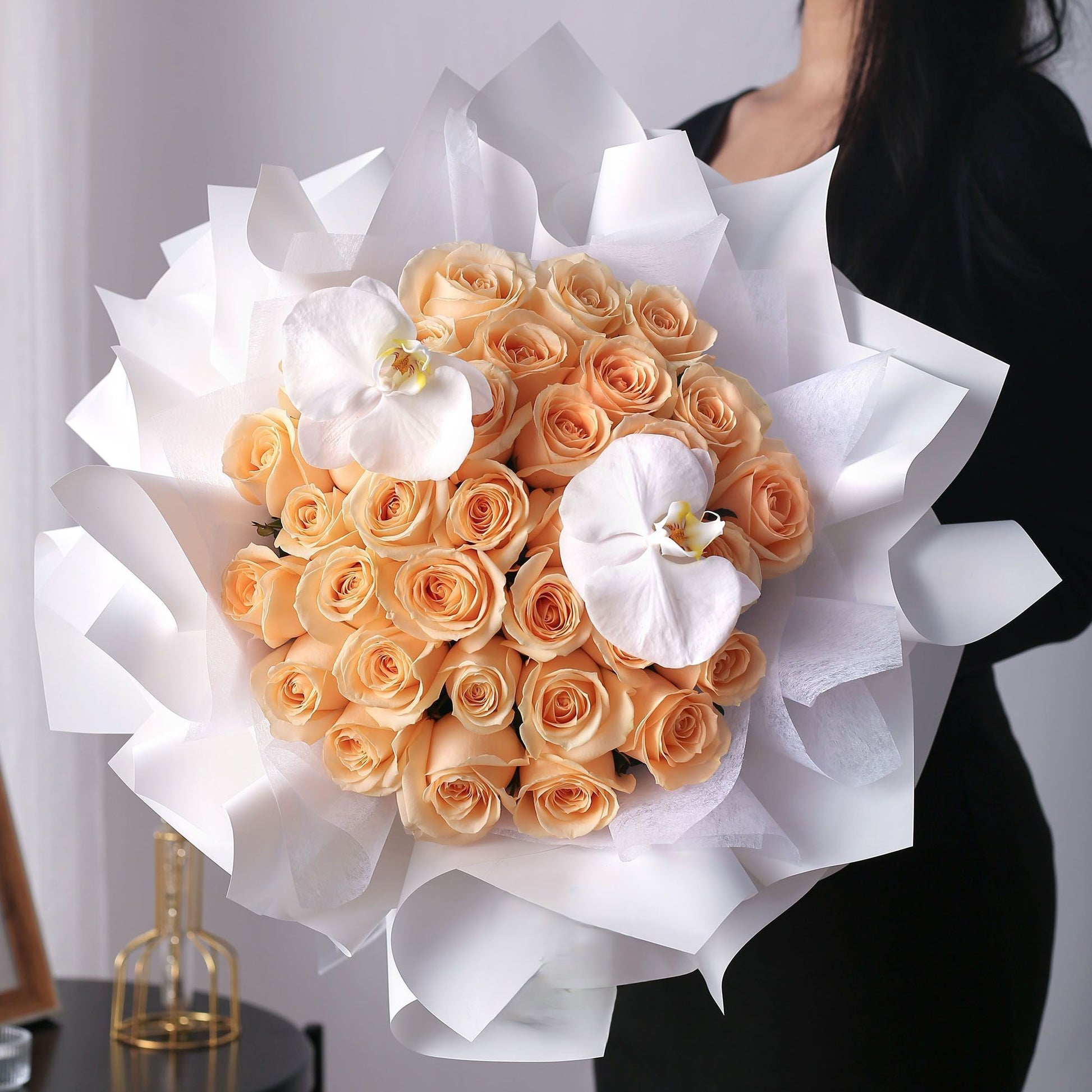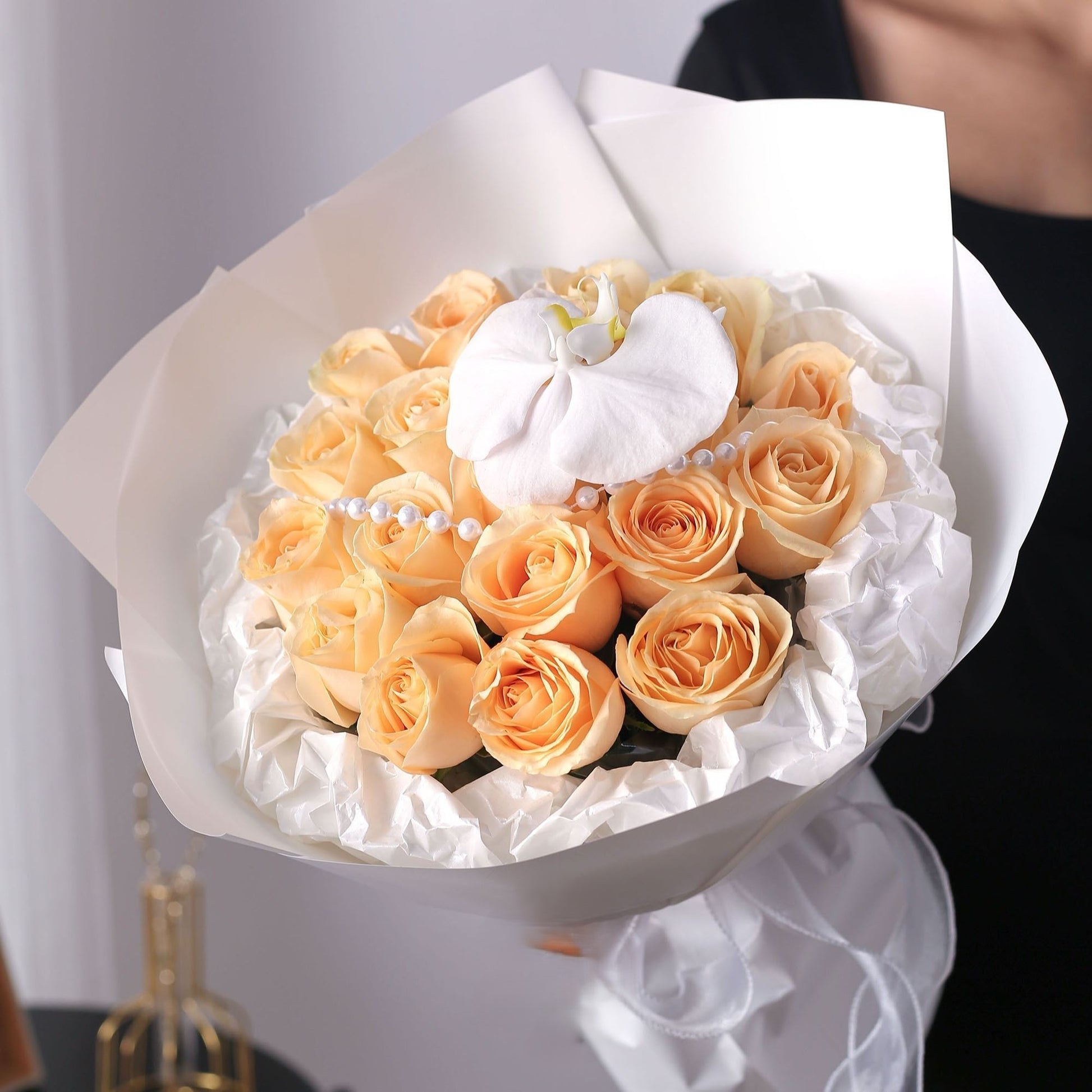 19/33枝|香檳玫瑰鮮花束|鍾情于你