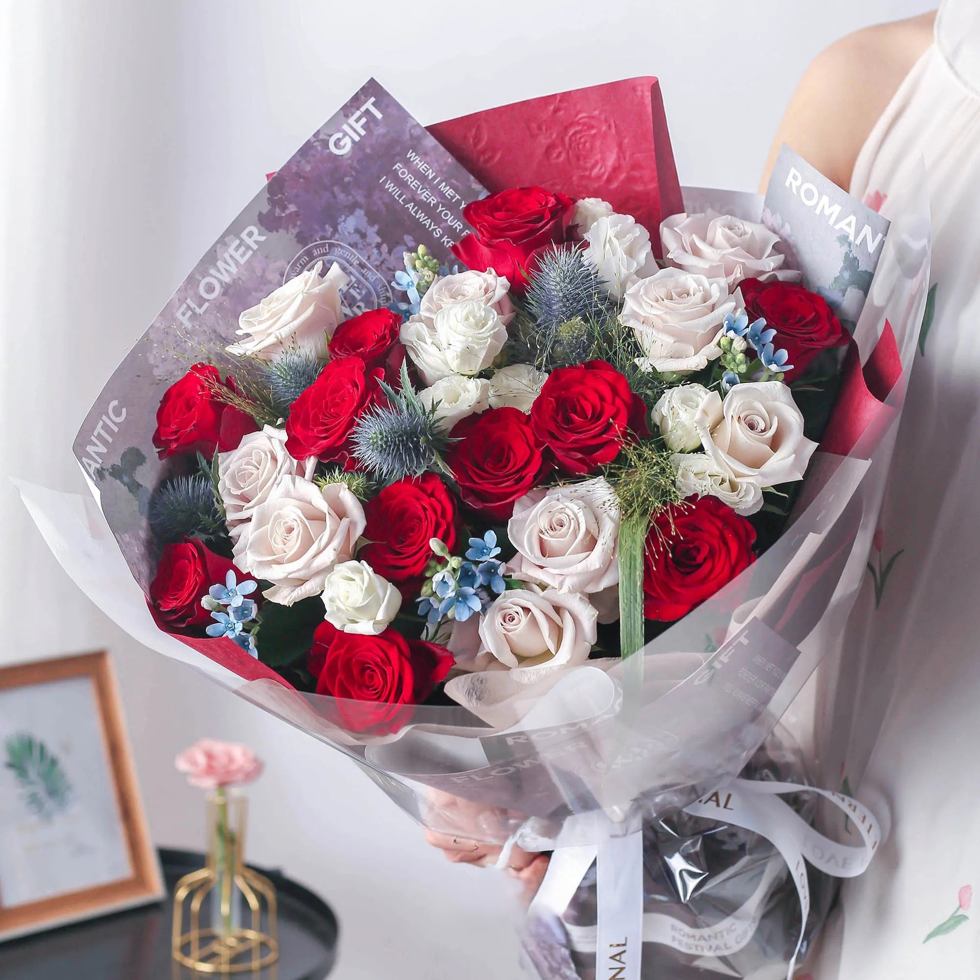 曼塔紅玫瑰混搭鮮花束|情有獨鍾