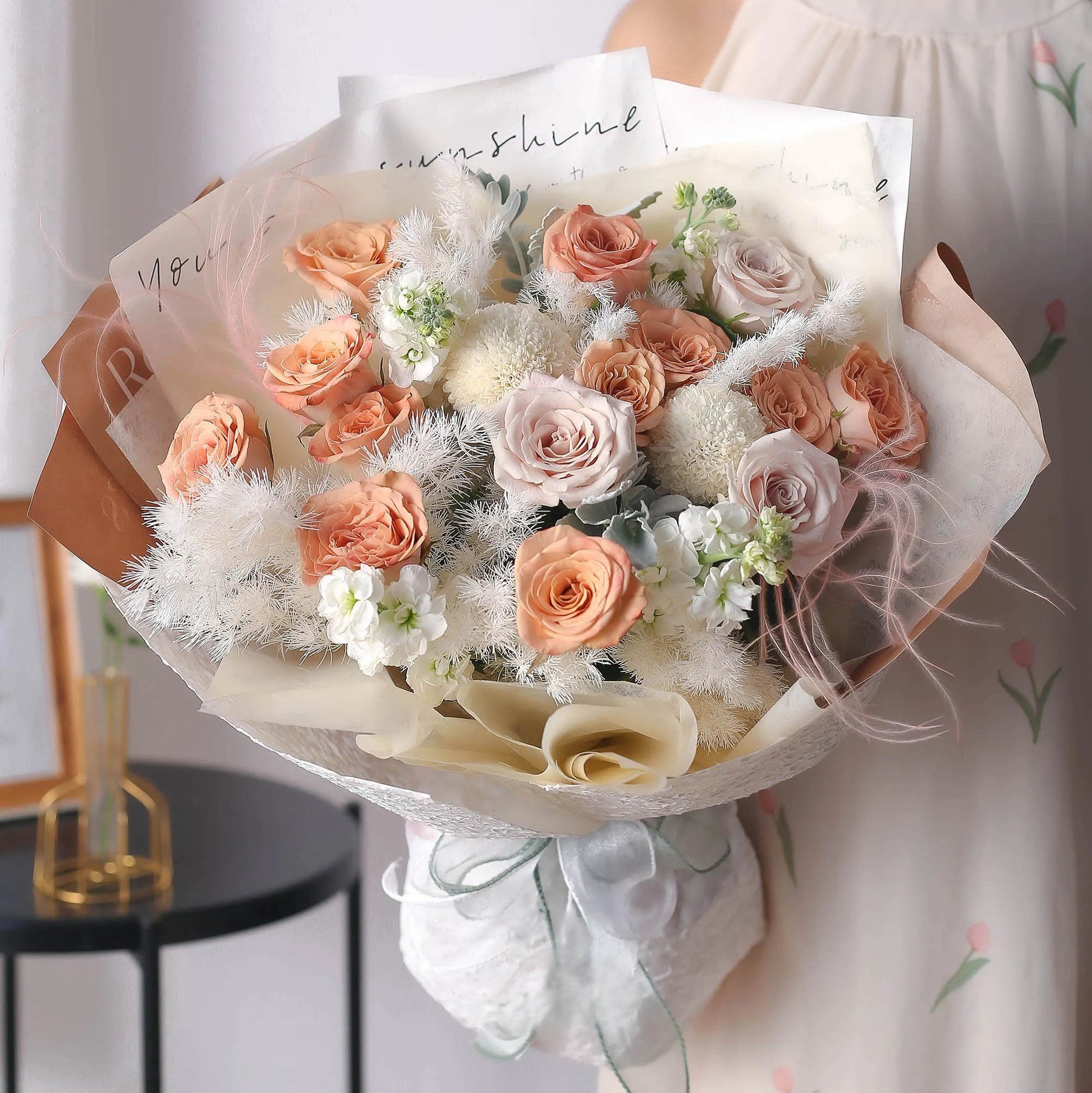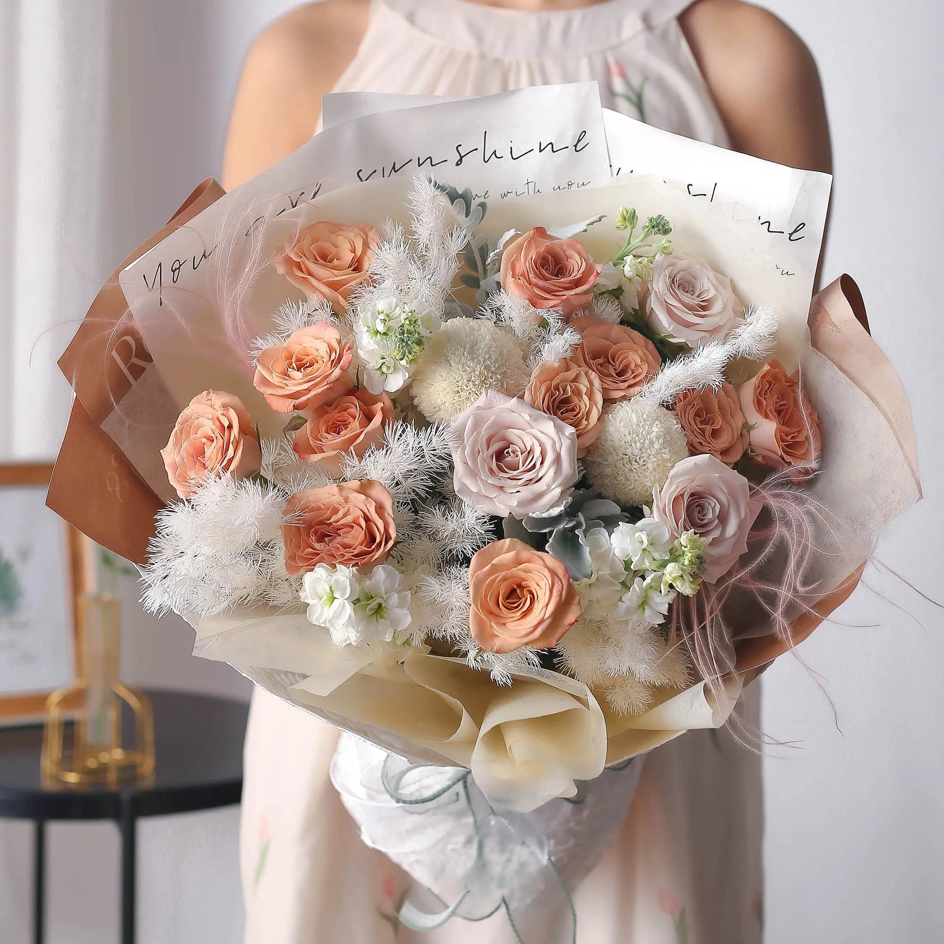晚風|卡布奇諾曼塔玫瑰混搭鮮花束