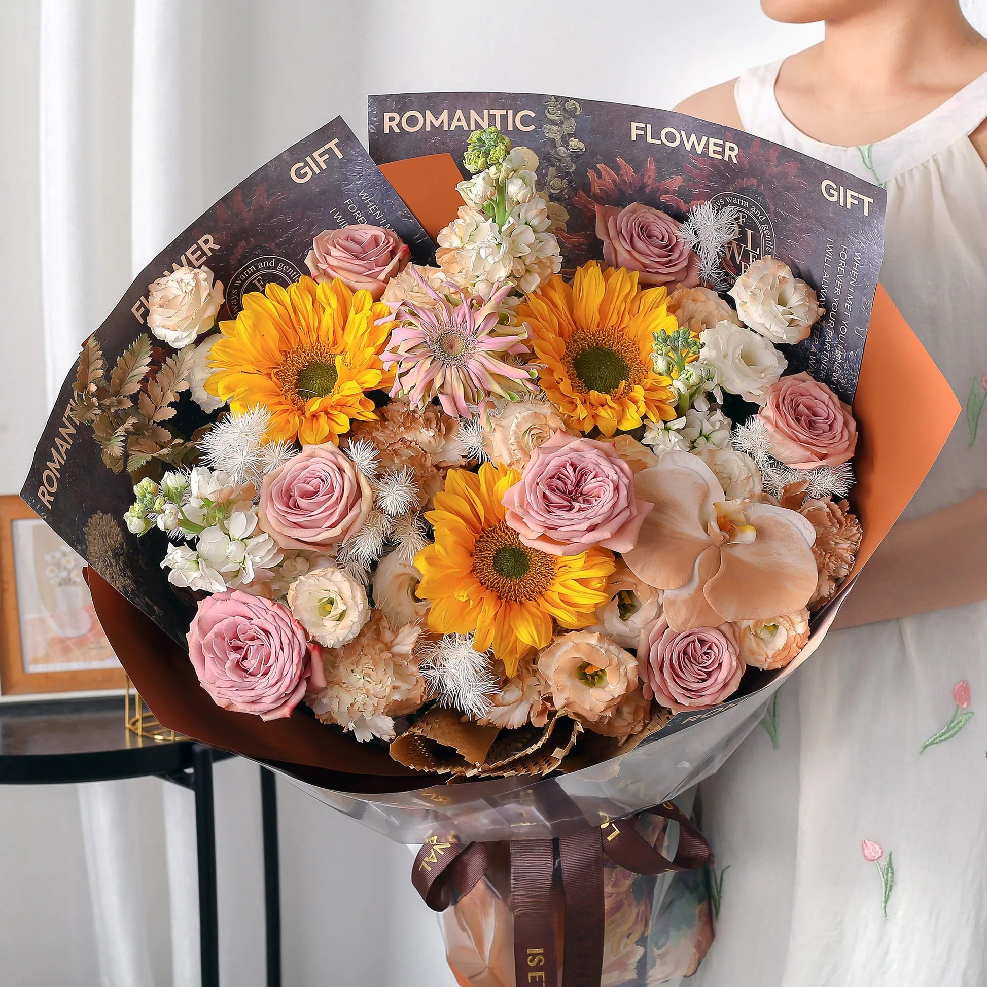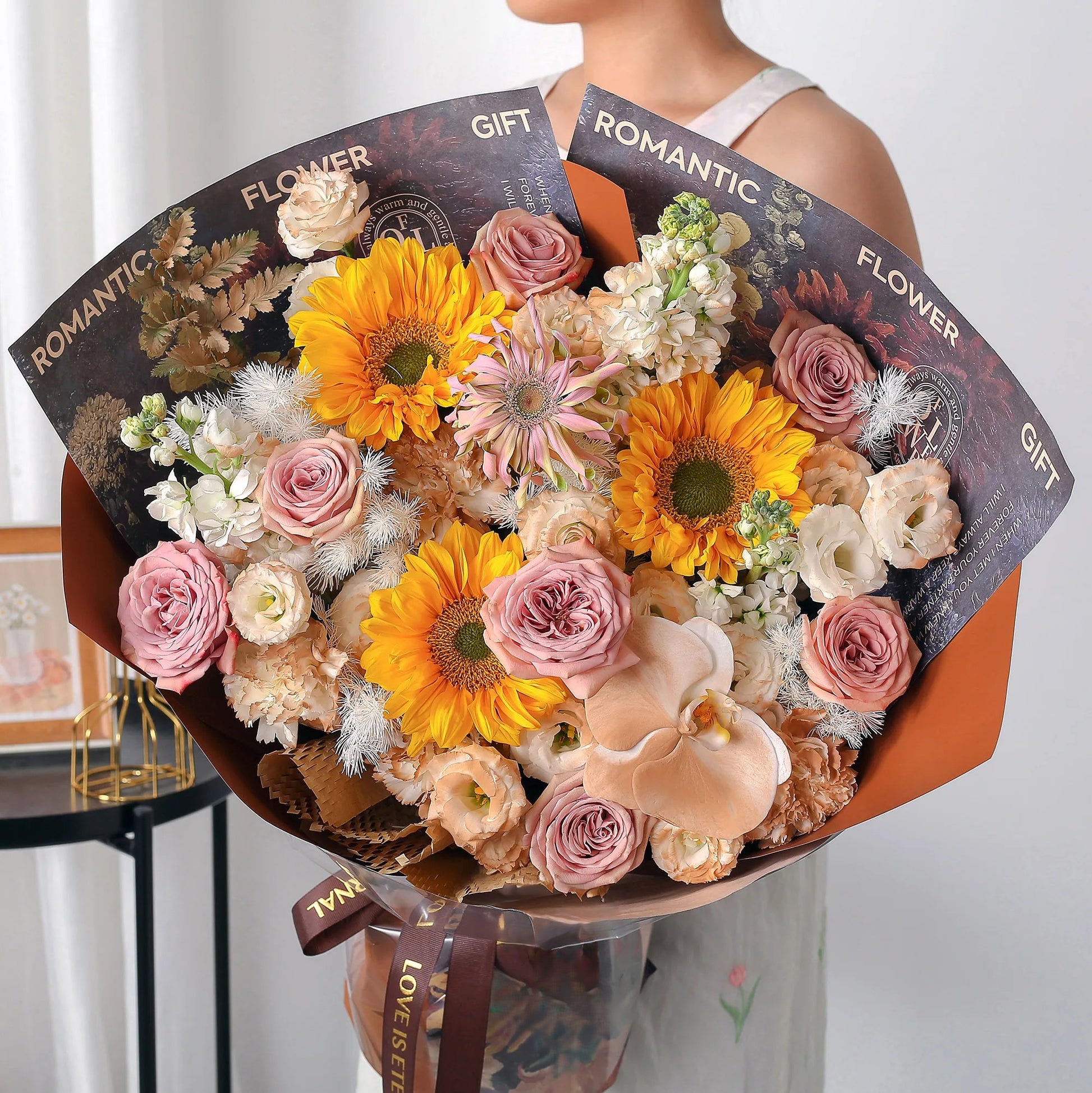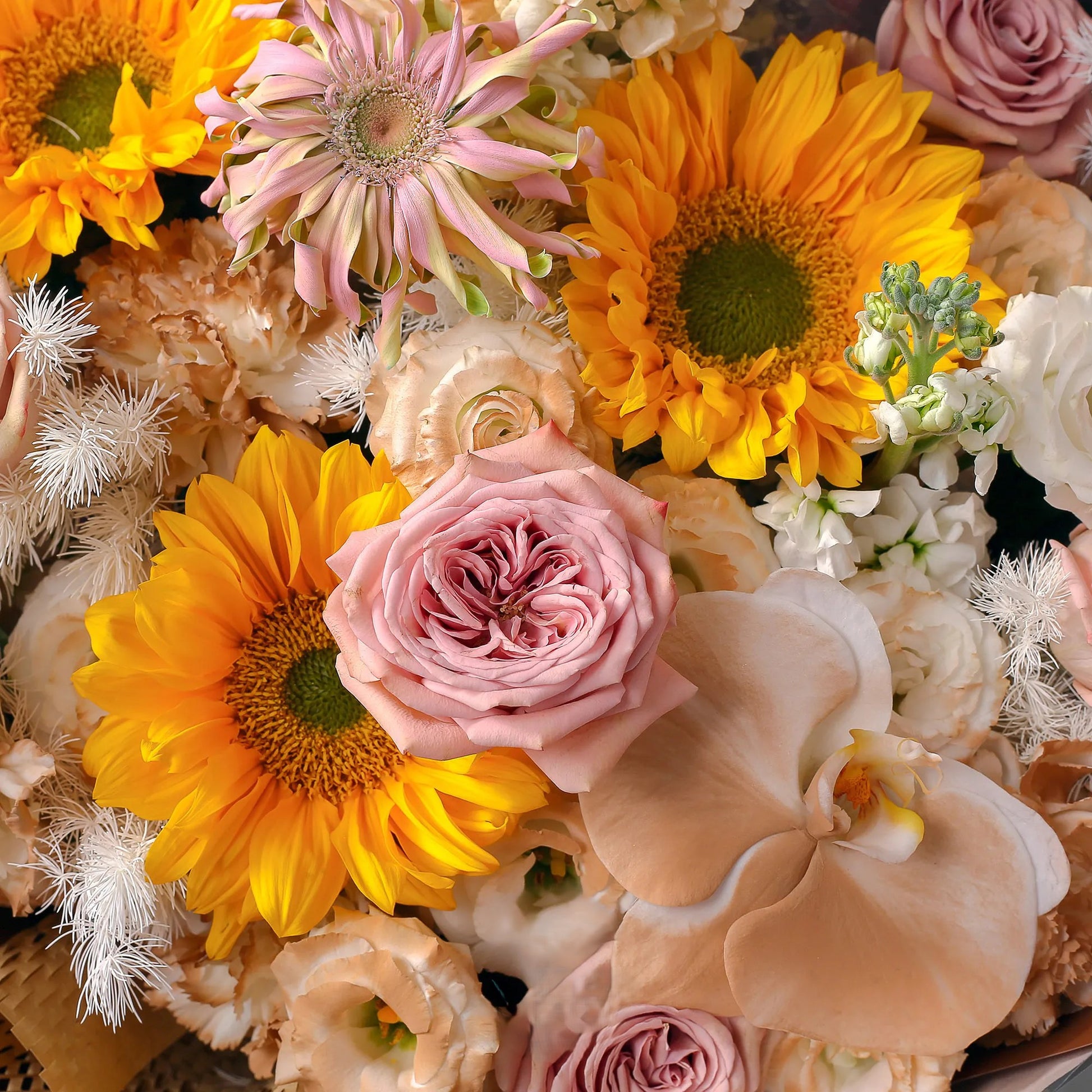 未來可期|向日葵卡布奇諾蝴蝶蘭混搭鮮花束