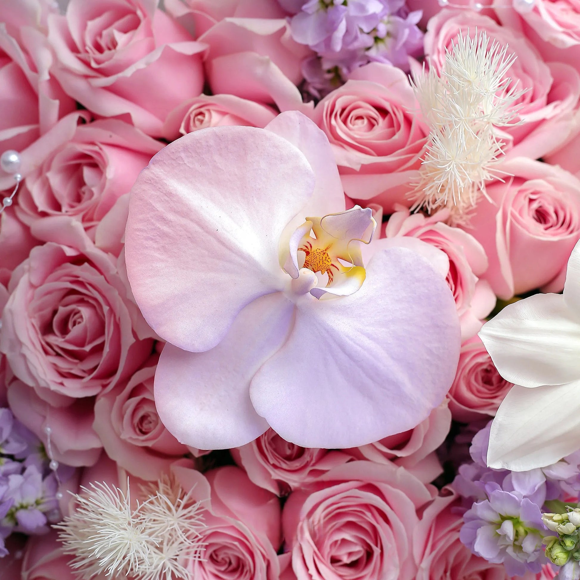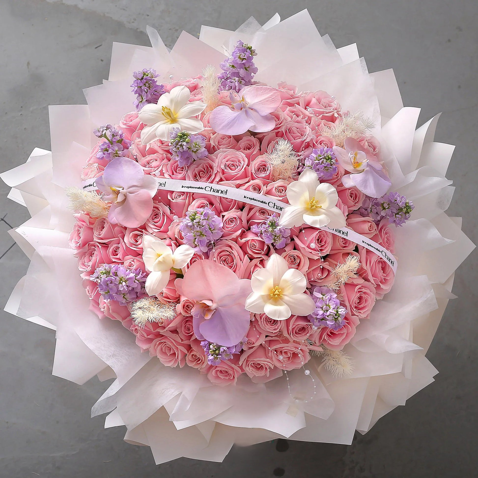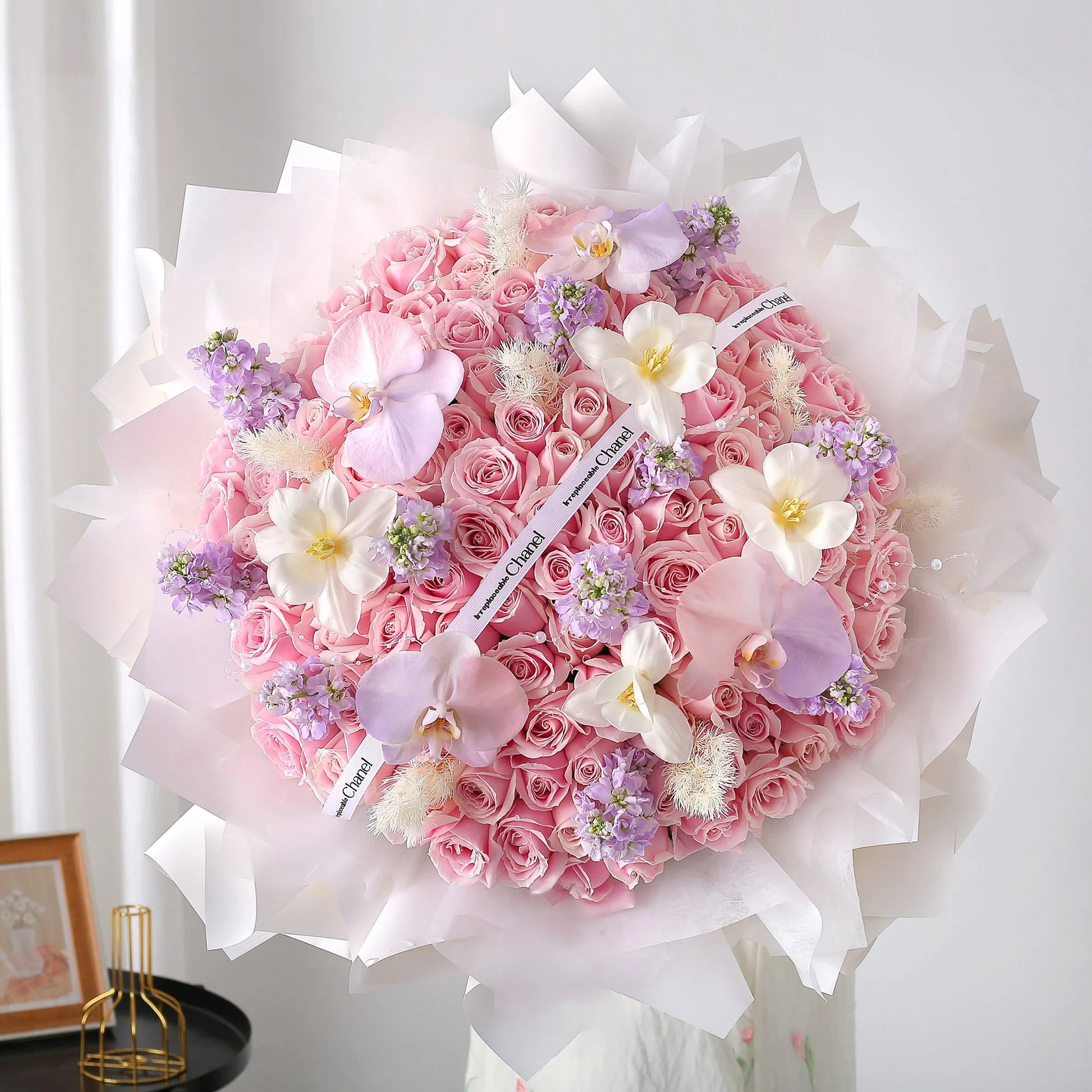 愛的禮物|粉雪山鬱金香蝴蝶蘭混搭鮮花束