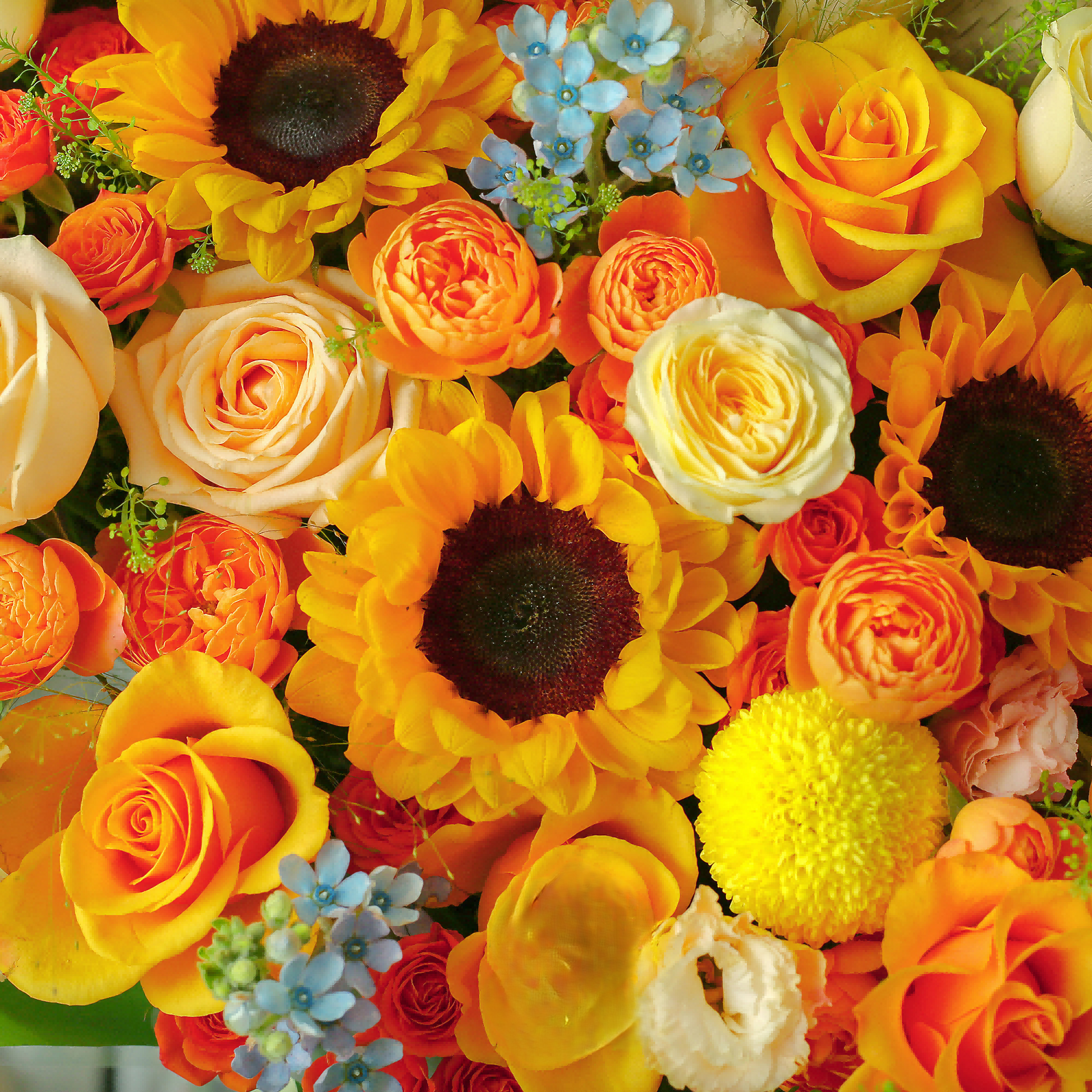 沐光林謠|向日葵香檳橙玫瑰混搭鮮花束