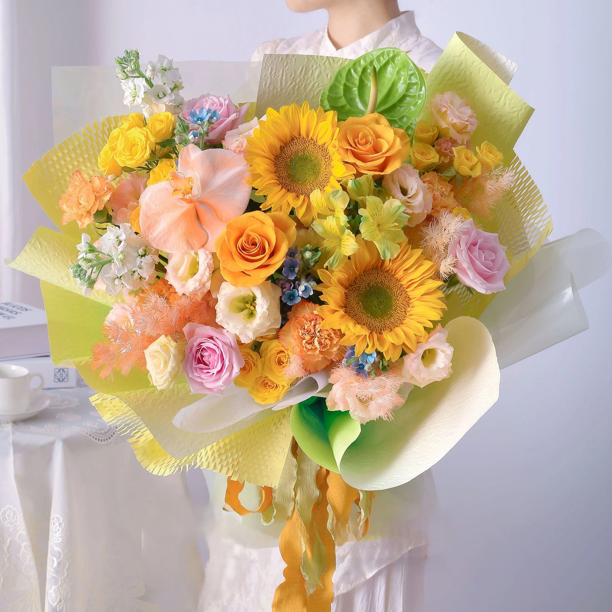 【陽光如你】向日葵粉雪山混搭鮮花束