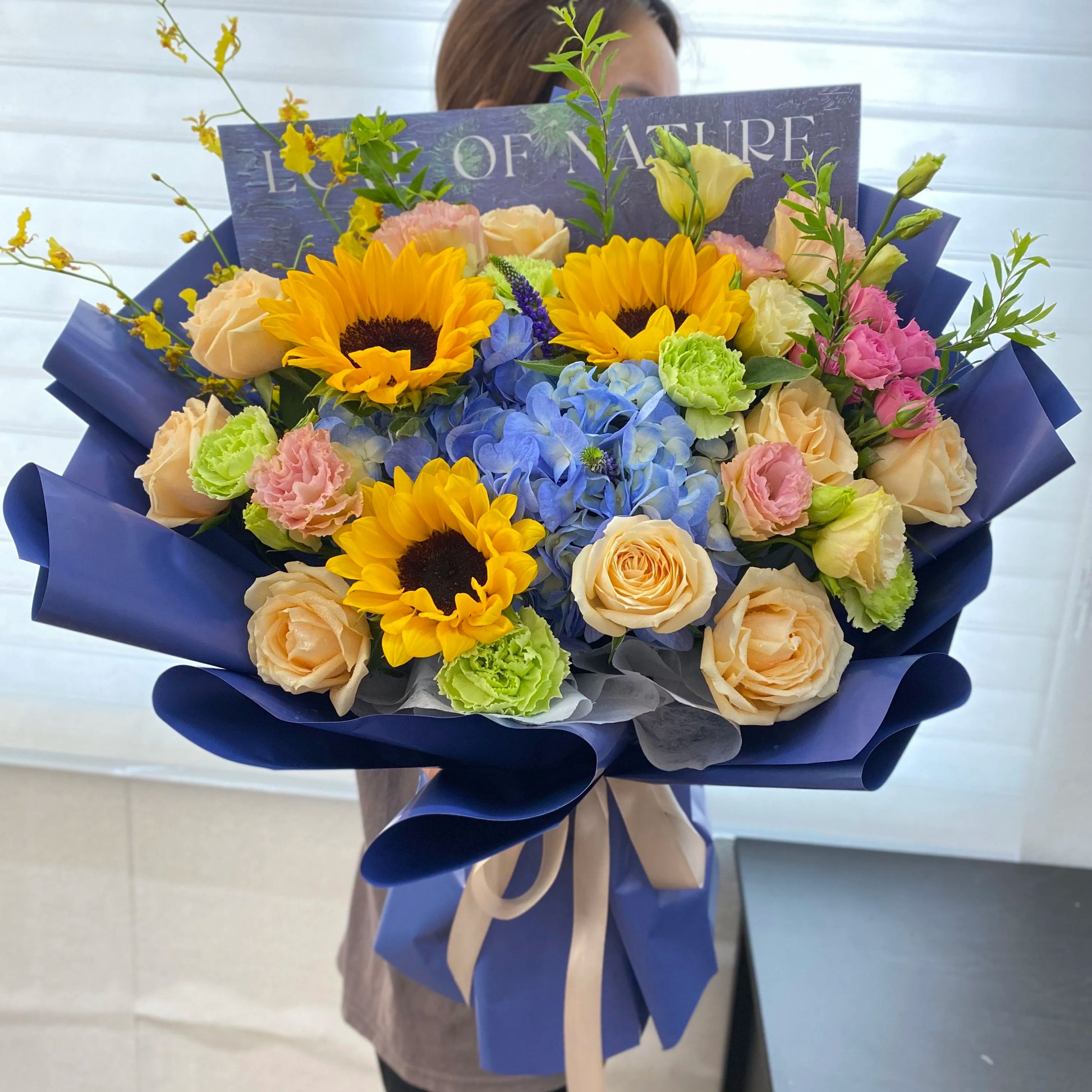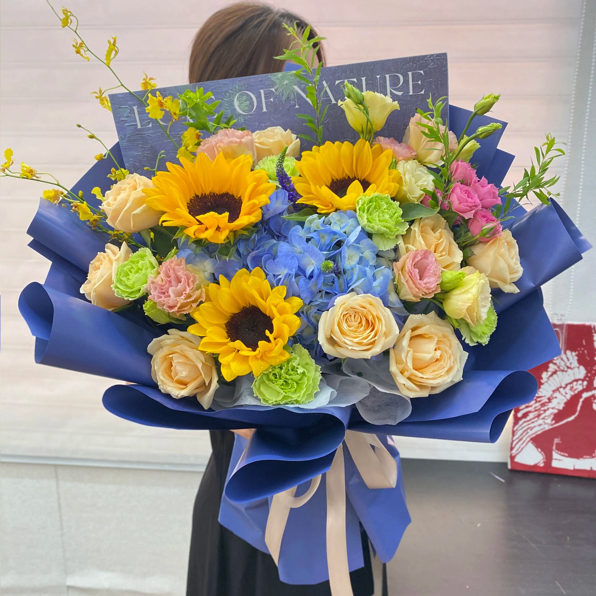 向日葵繡球康乃馨混搭鮮花束|大花束