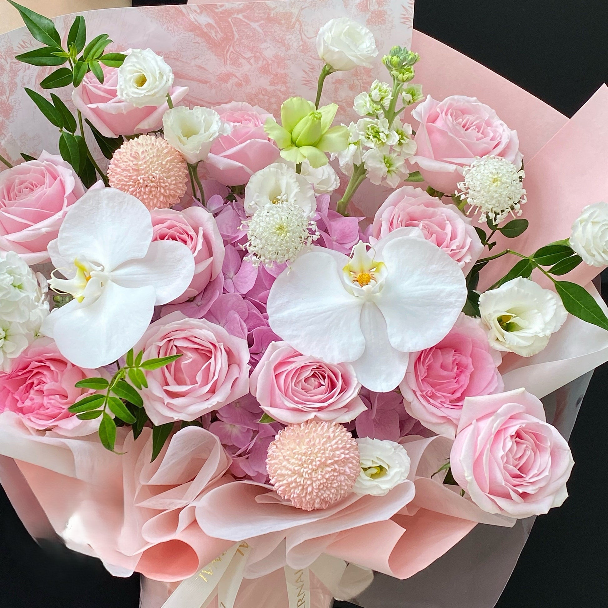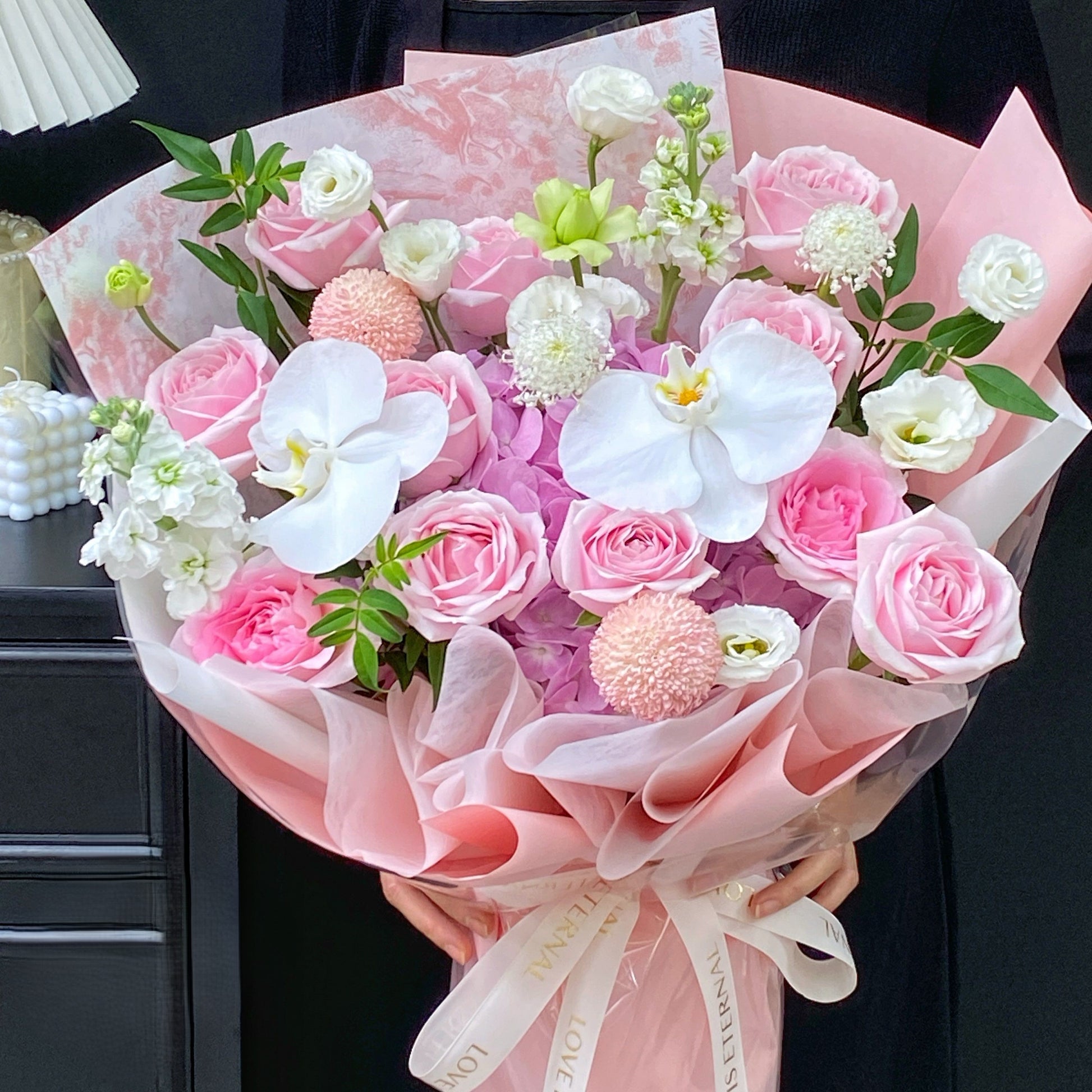 粉雪山玫瑰蝴蝶蘭混搭鮮花束|溫柔時光