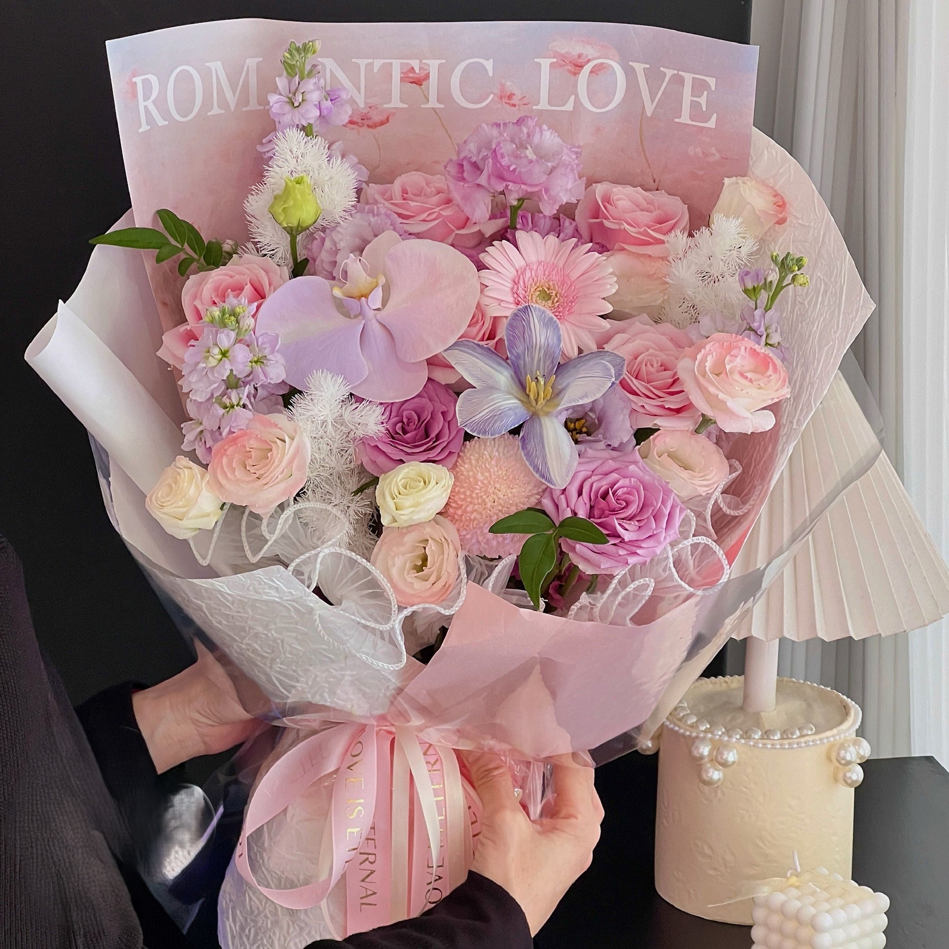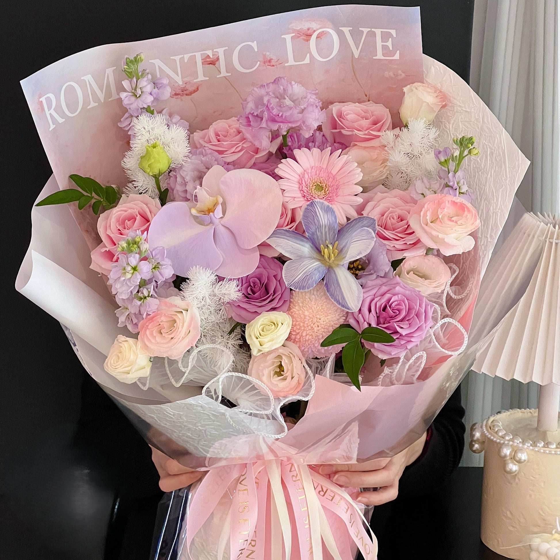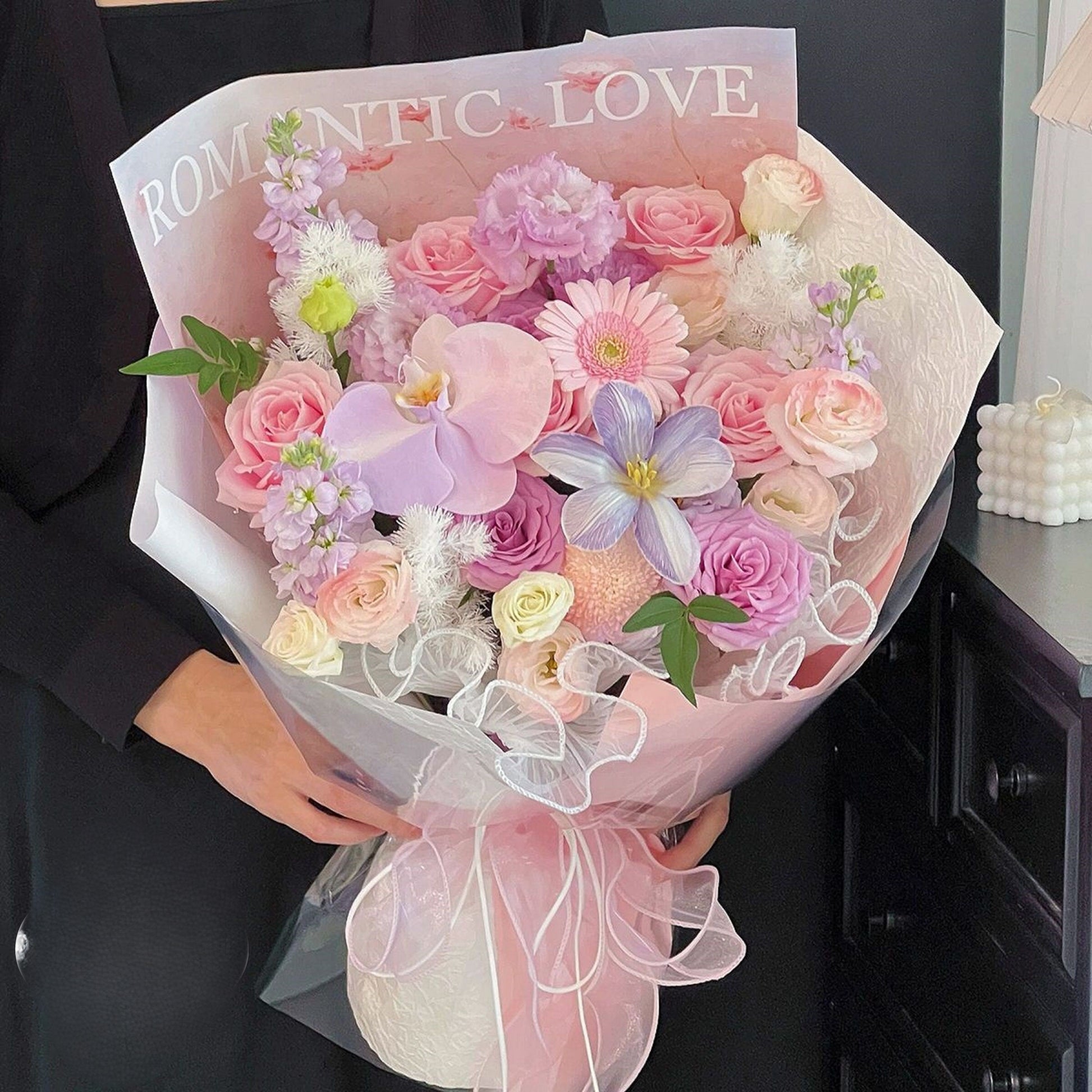 玫瑰鬱金香紫羅蘭蝴蝶蘭混搭鮮花束|莫奈花園