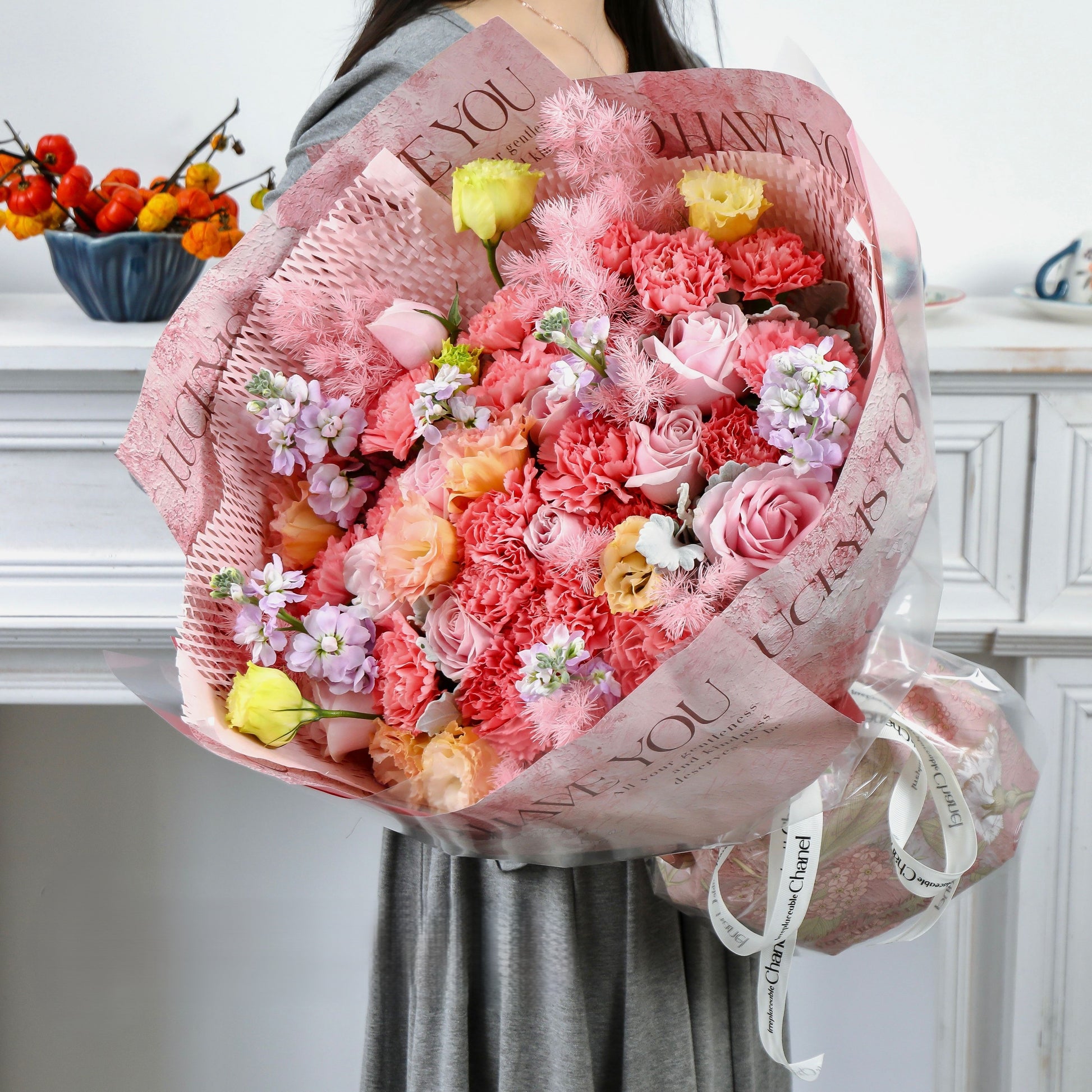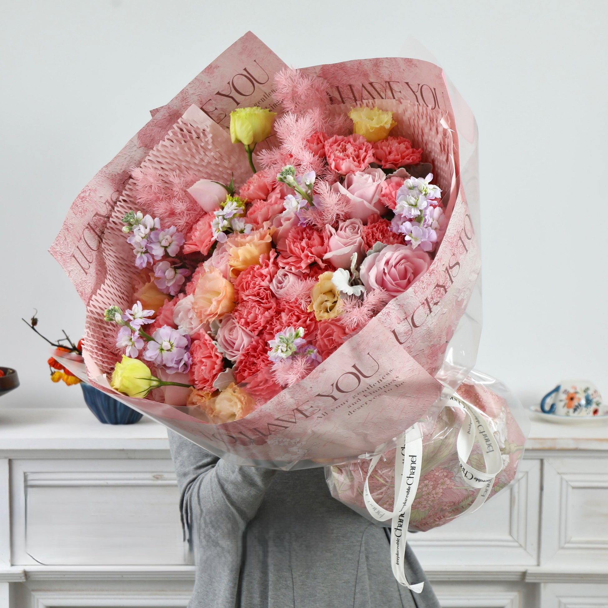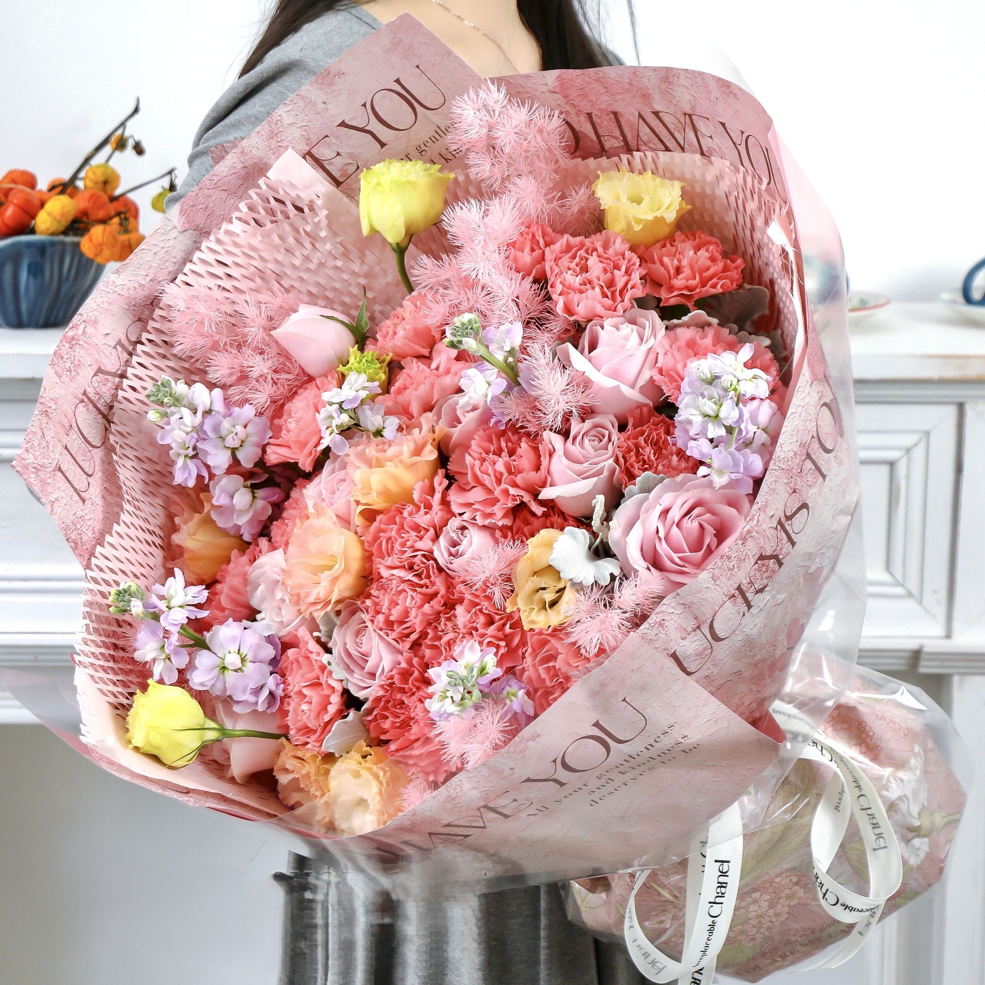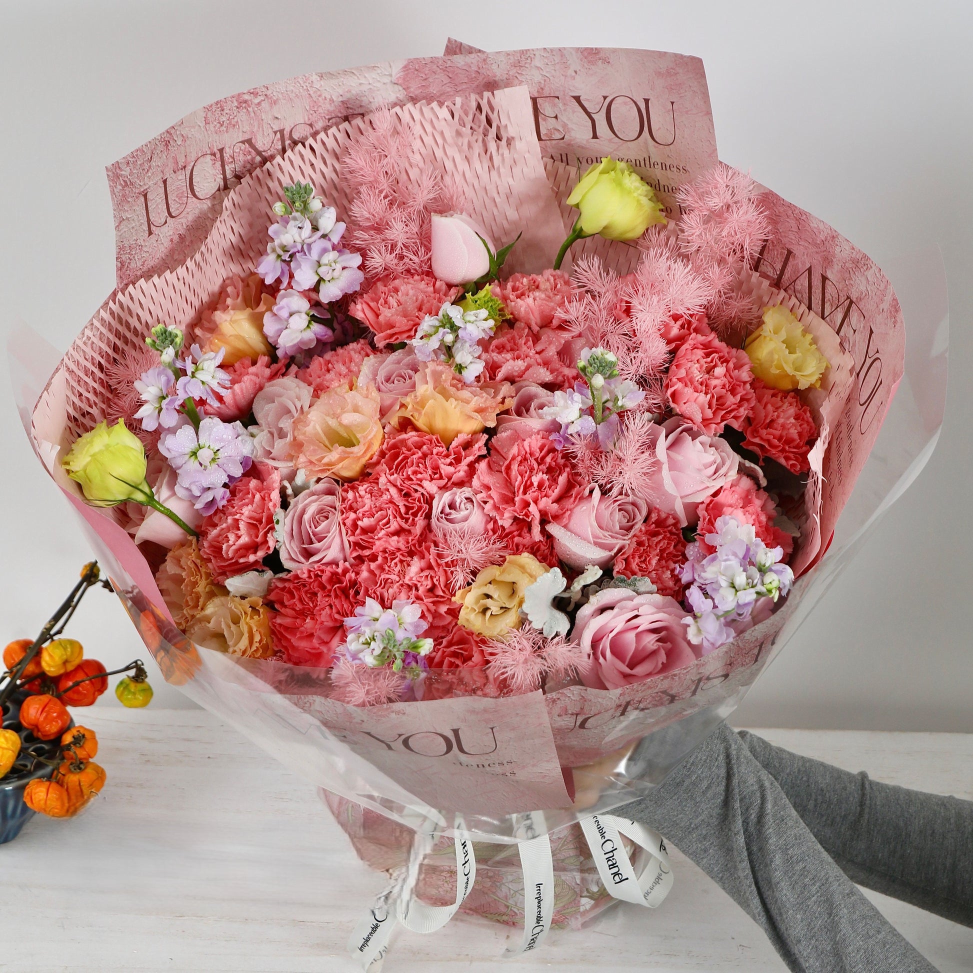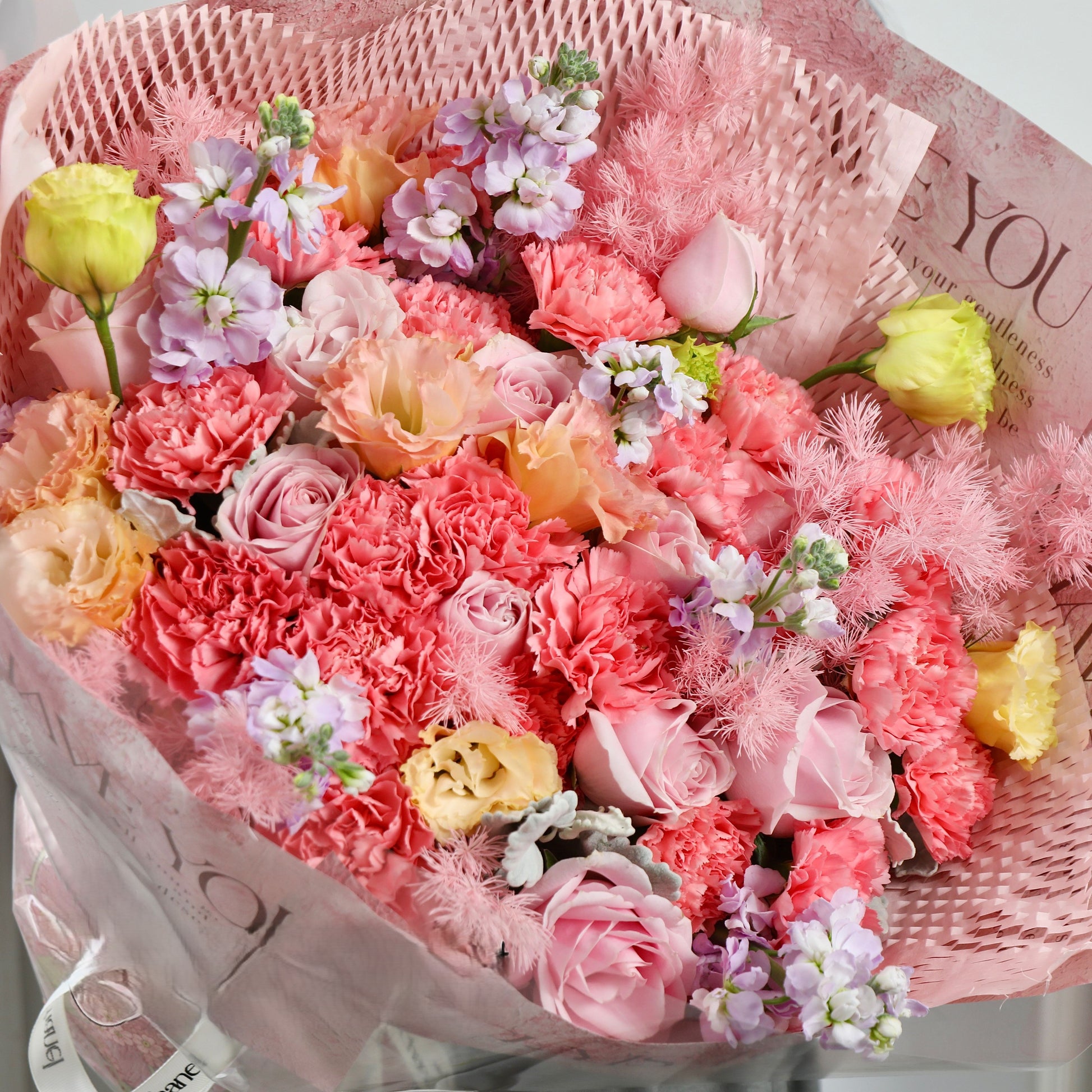康乃馨粉玫瑰混搭鮮花束|初遇柔情