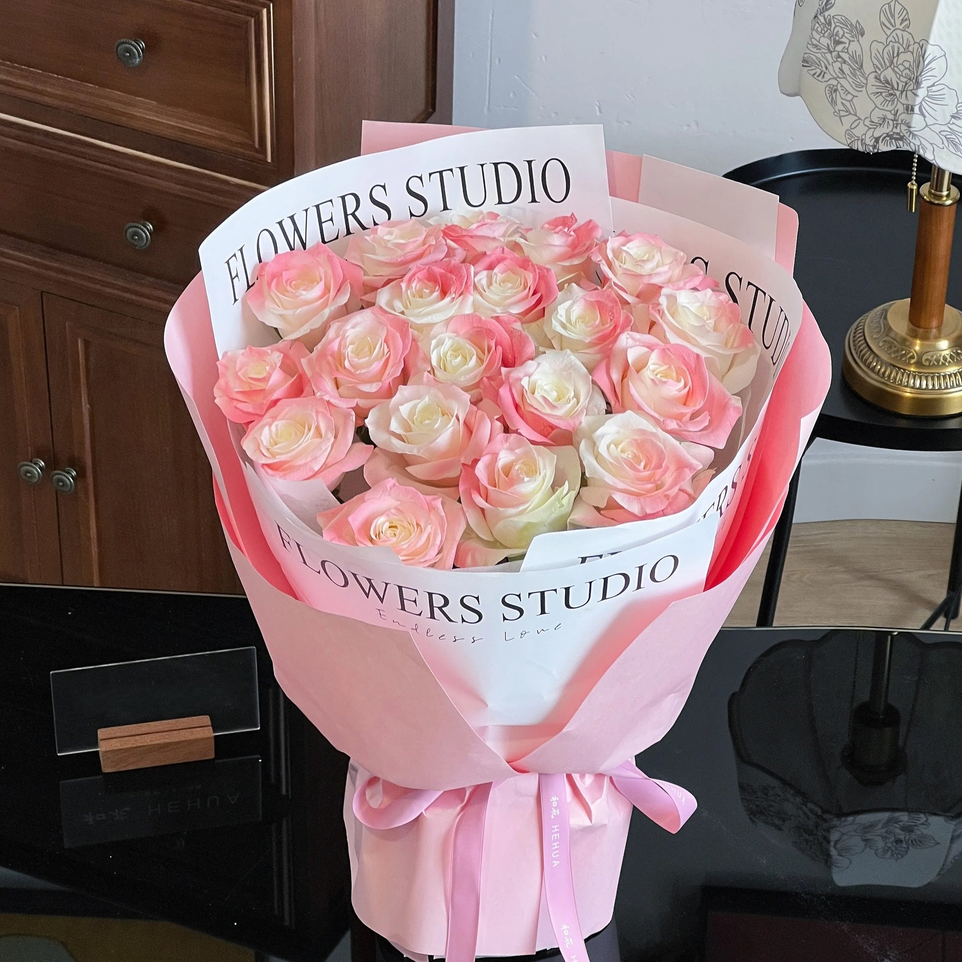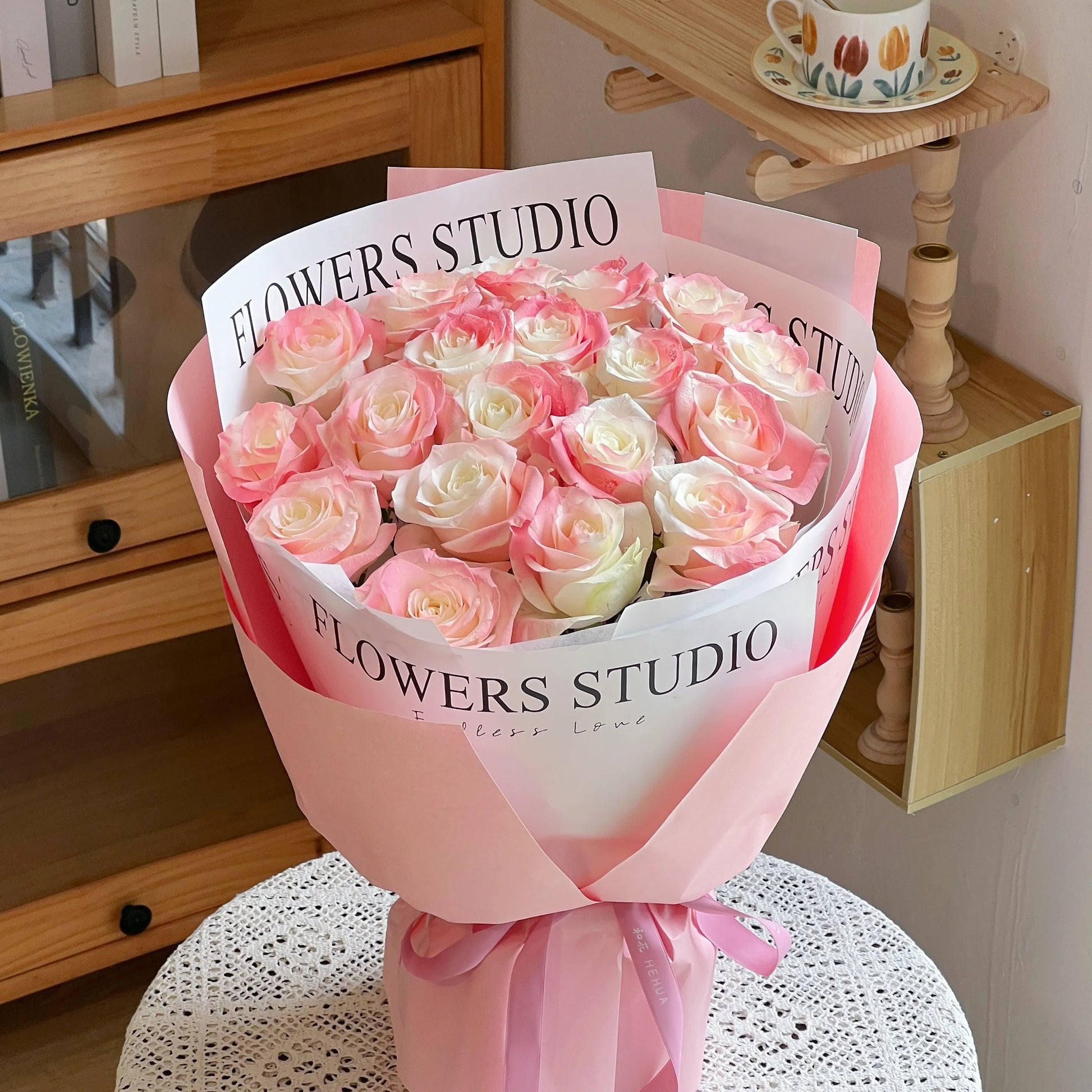 火烈鳥粉|噴色玫瑰鮮花束 19 stems