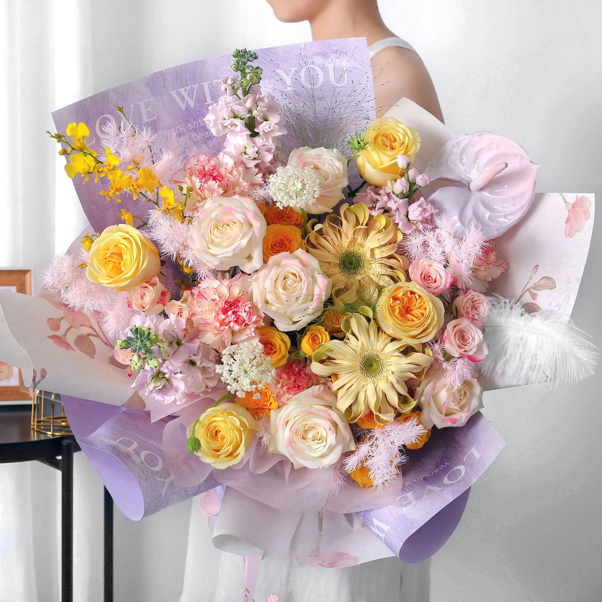 奶糖狙擊|奶油杯白玫瑰折射玫瑰混搭鮮花束