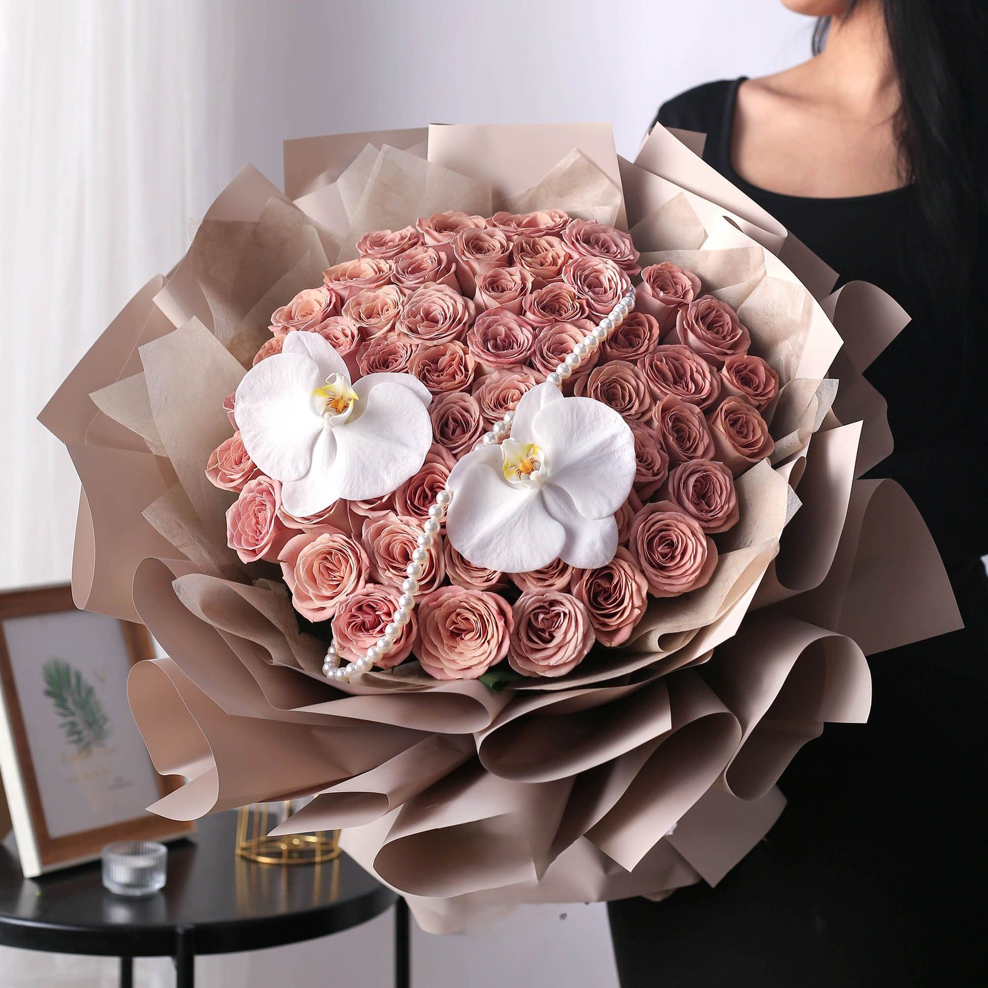 卡布奇諾玫瑰鮮花束/52枝|綺夢