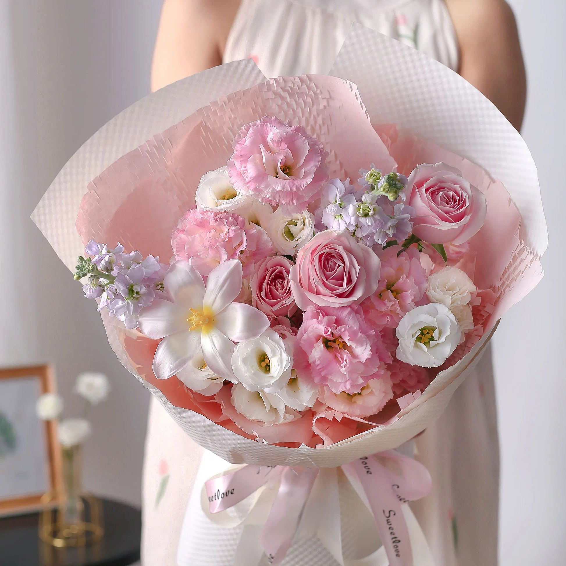 粉雪山粉桔梗鬱金香混搭鮮花束|甜蜜告白