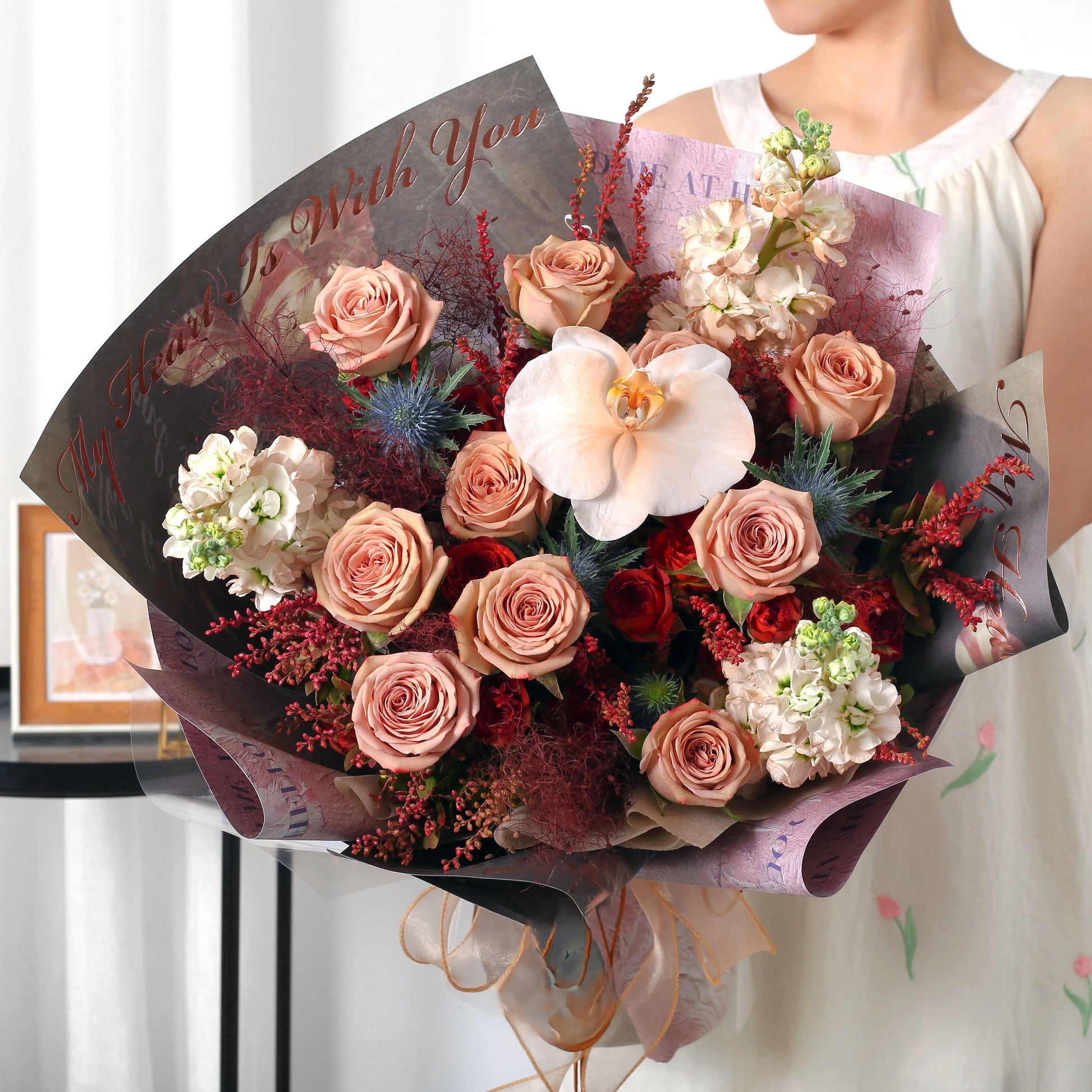 初見|卡布奇諾玫瑰蝴蝶蘭混搭鮮花束