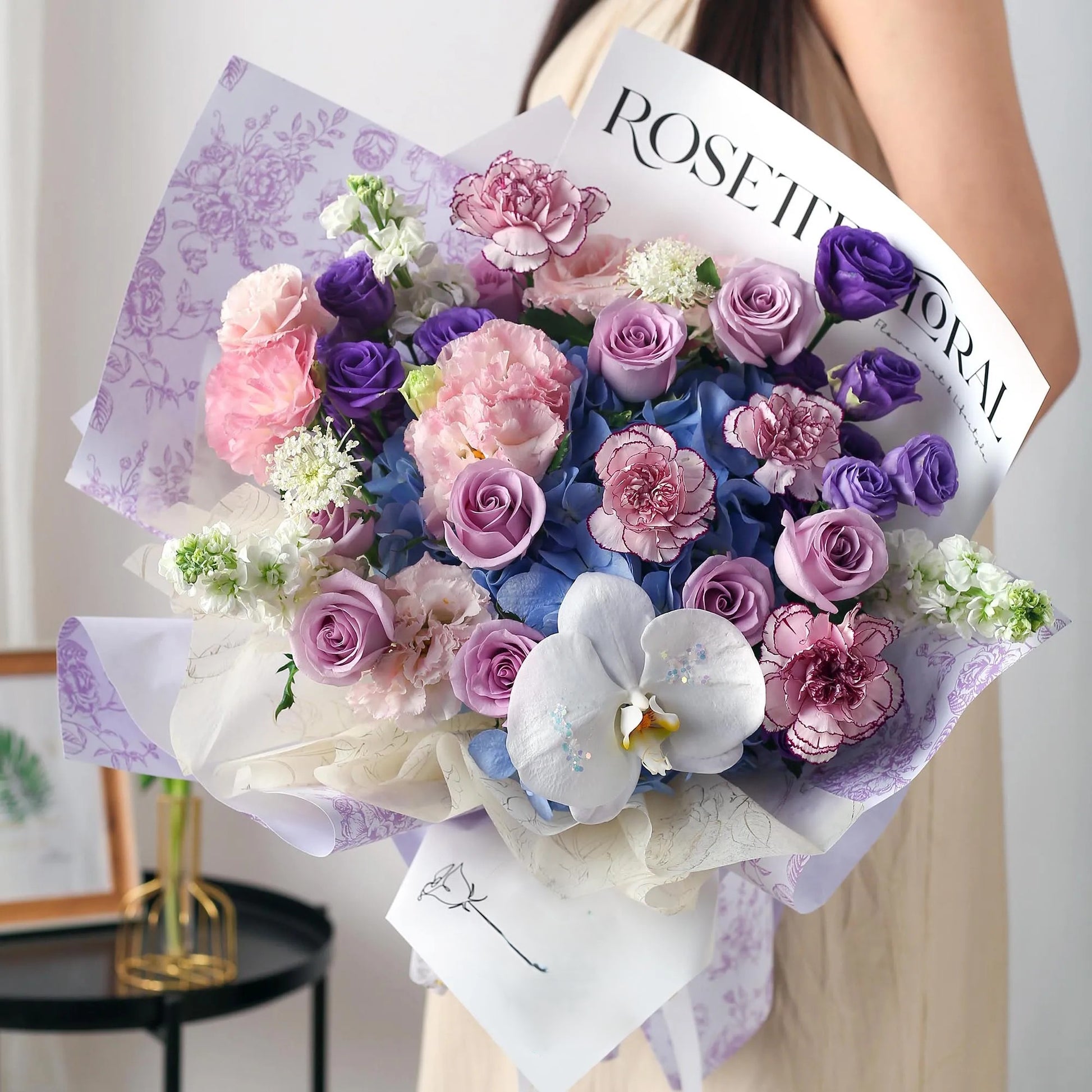 紫風輕柔|藍繡球海洋之歌混搭鮮花束