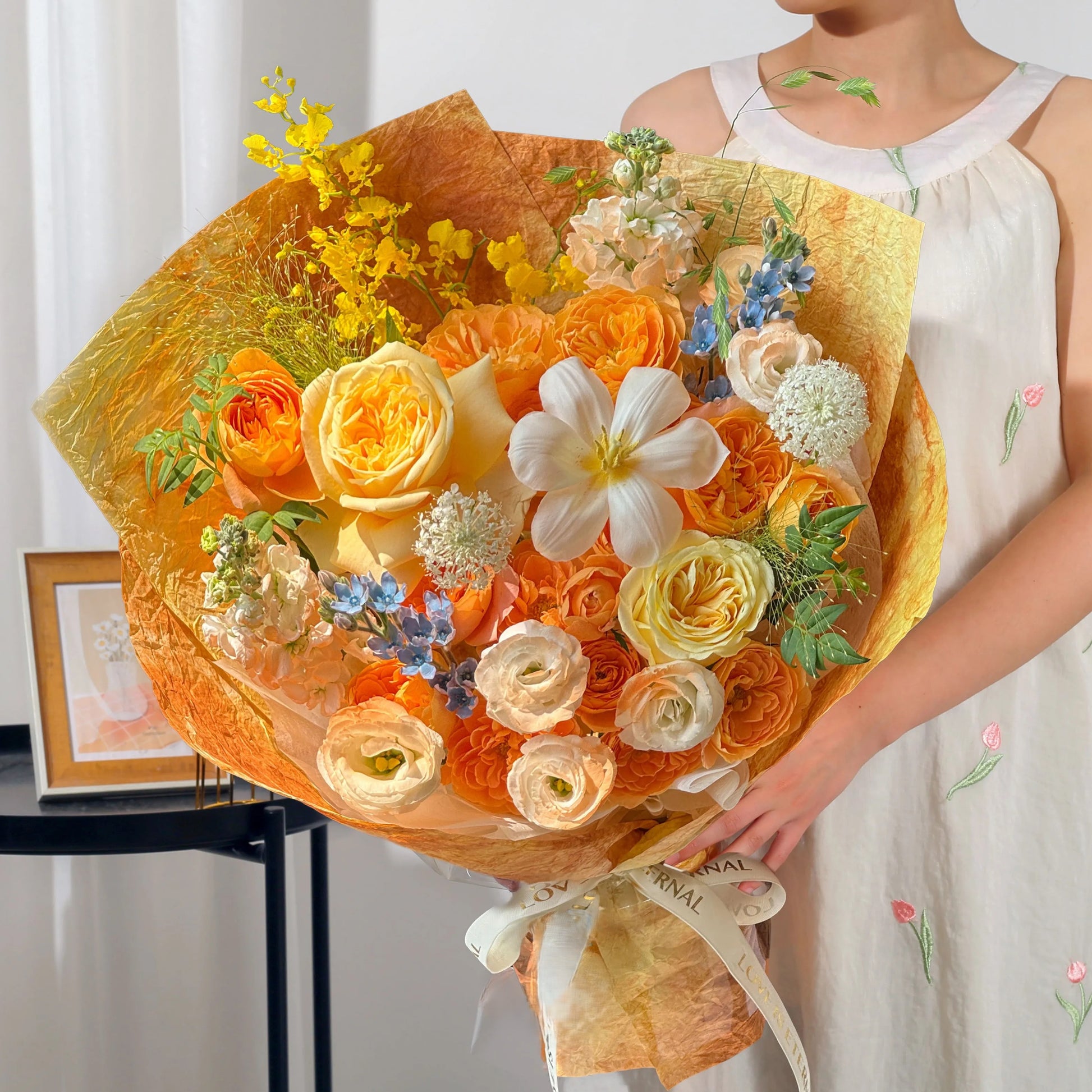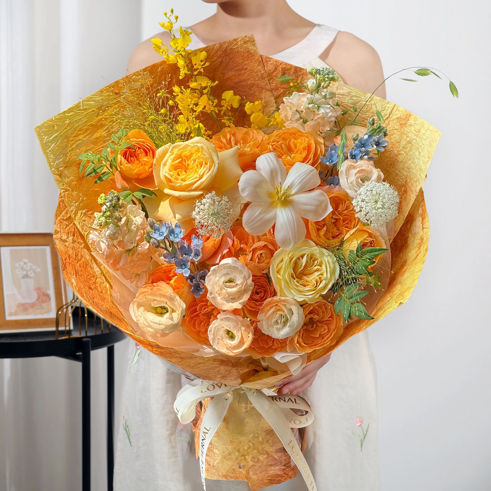 橘子汽水|奶油杯果汁泡泡鬱金香混搭鮮花束