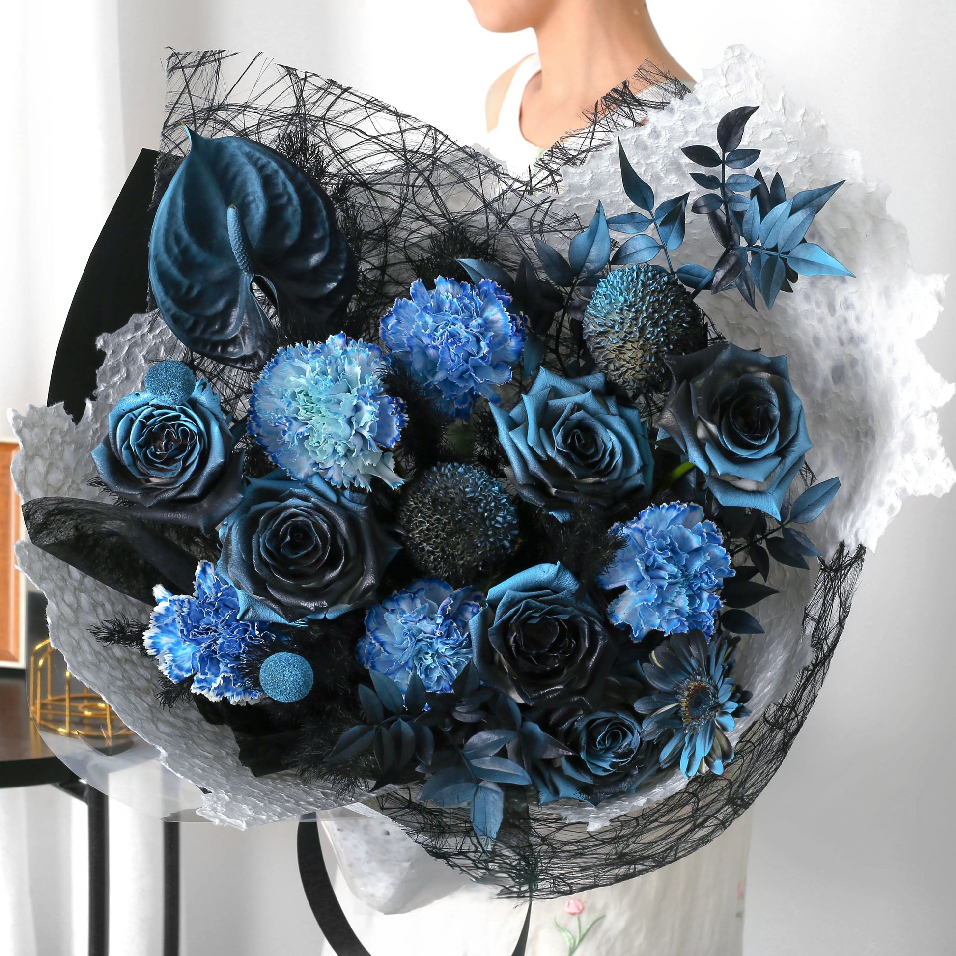 藍焰之吻|藍掌曼塔九星葉混搭鮮花束