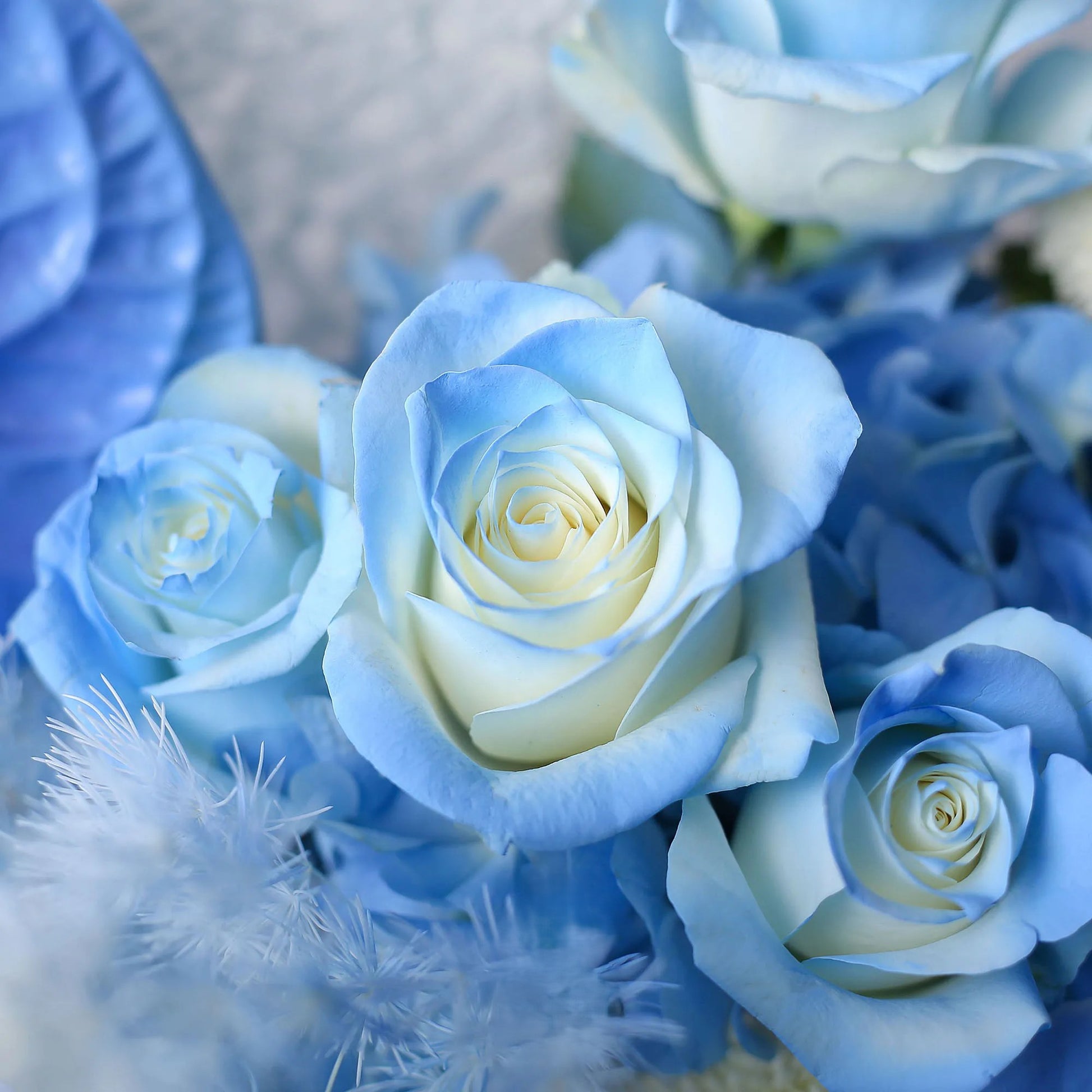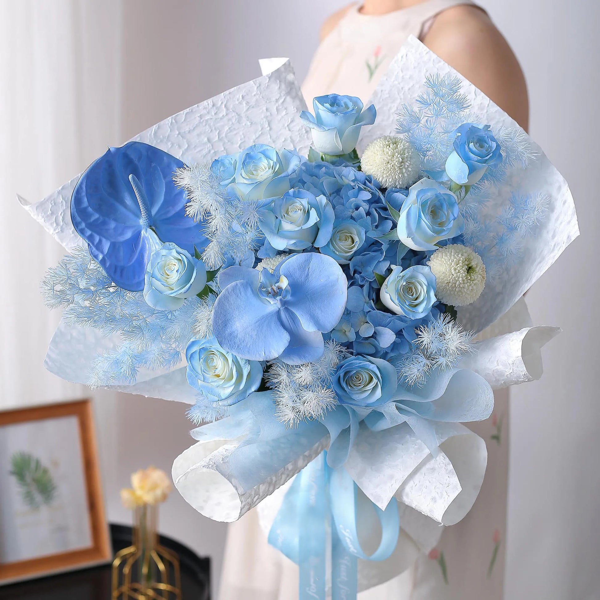 藍天白雲|碎冰藍玫瑰蝴蝶蘭藍繡球混搭鮮花束