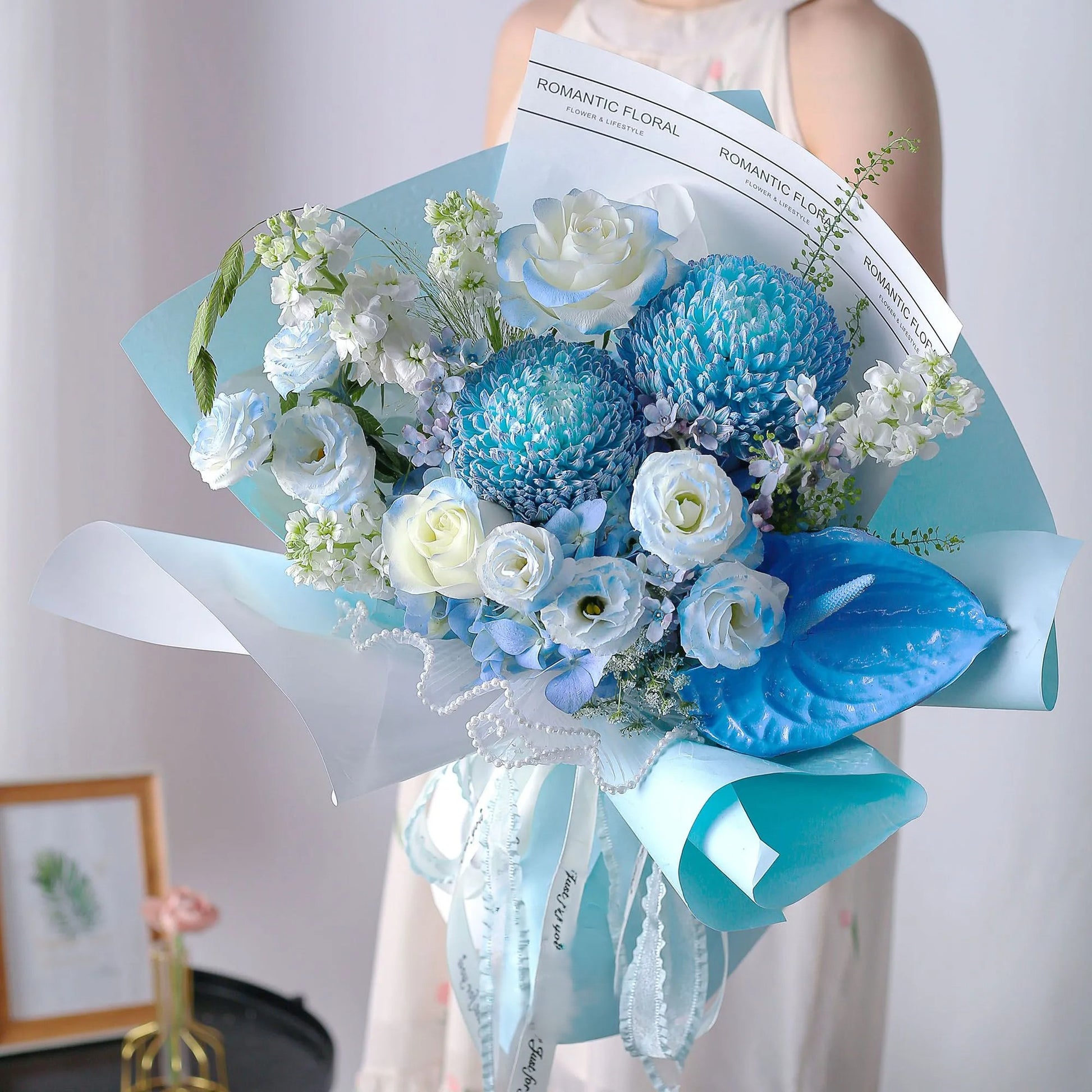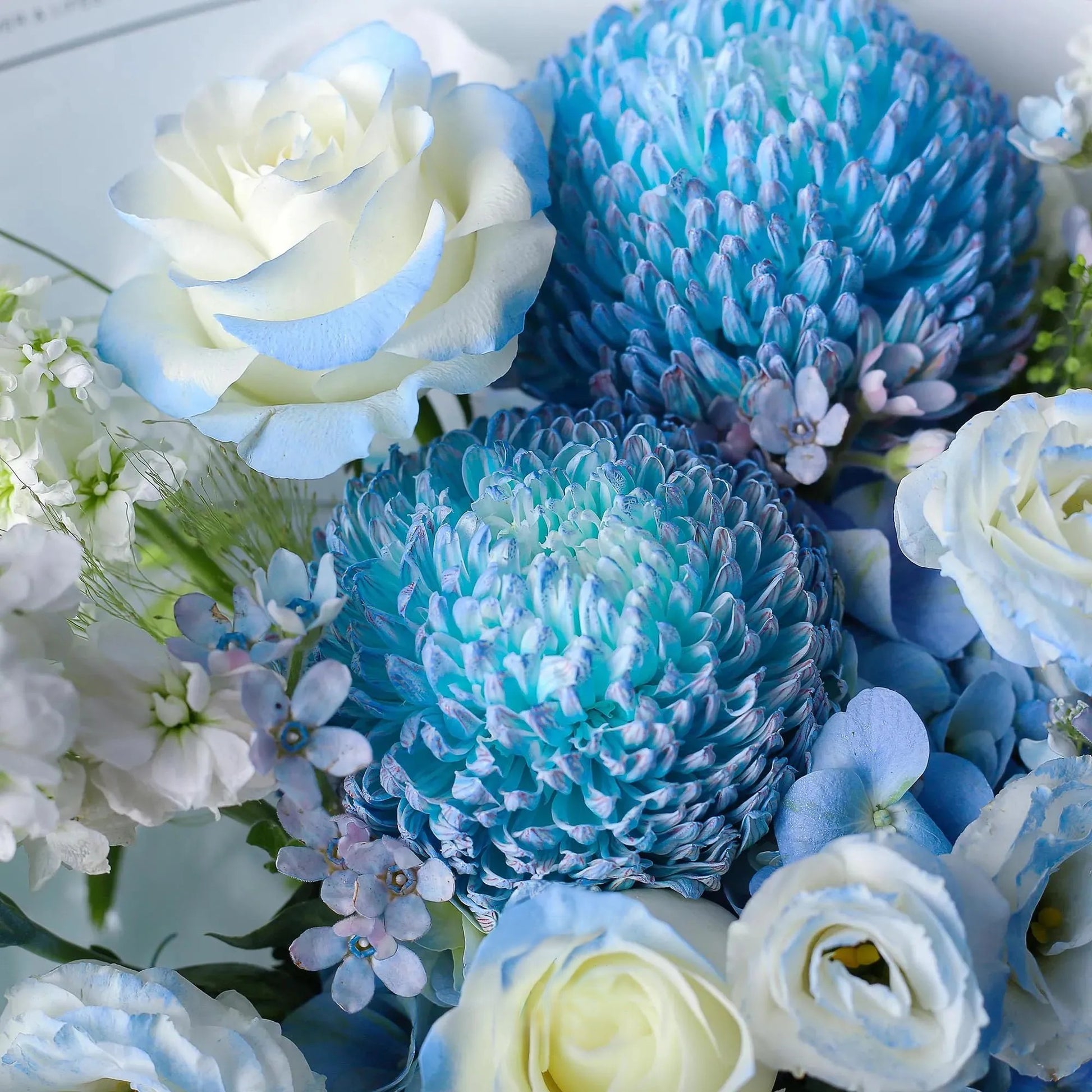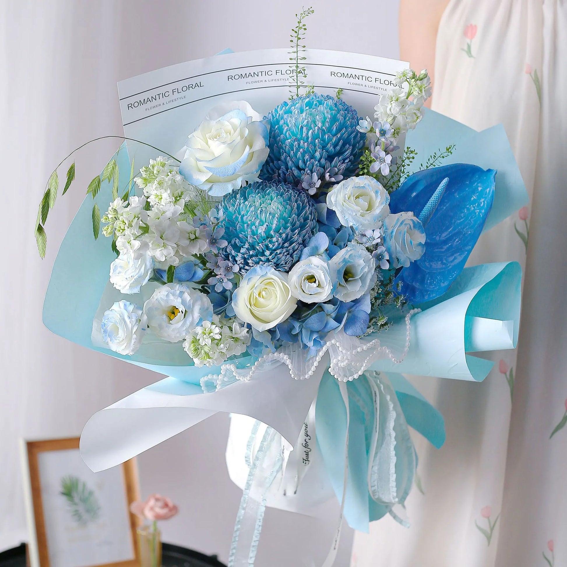 秘境花園|碎冰藍玫瑰牡丹菊混搭鮮花束