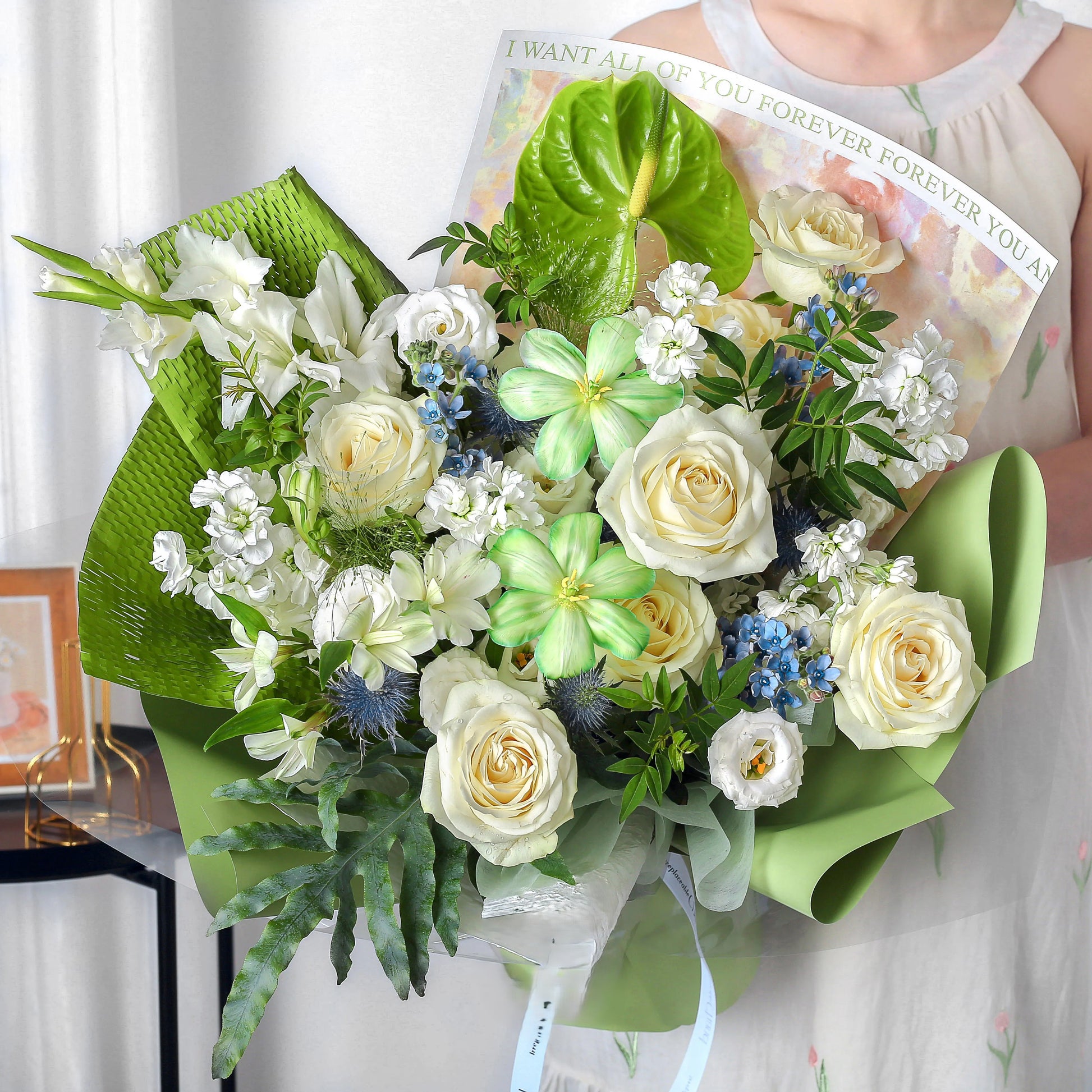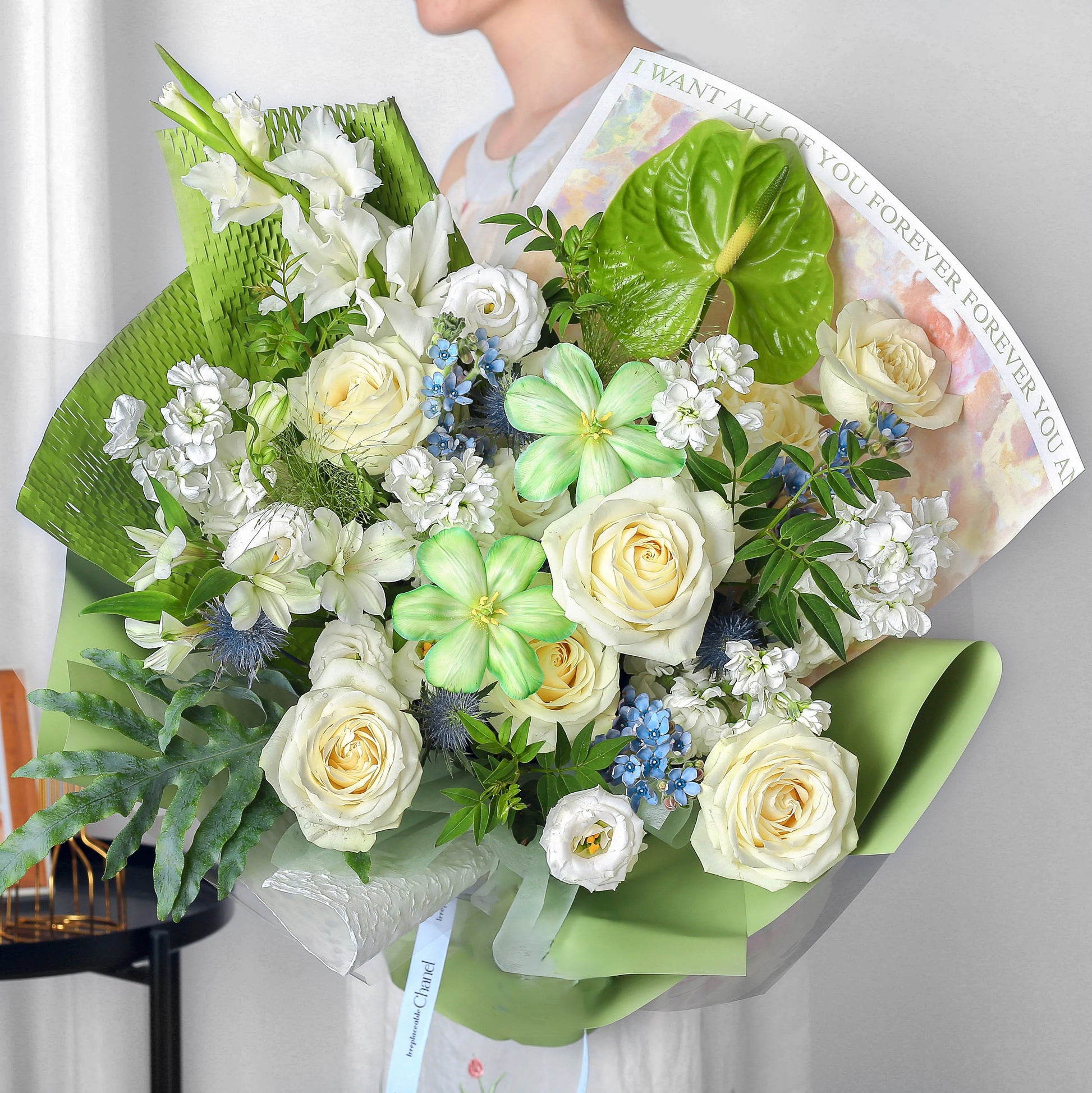 抹茶|白玫瑰劍蘭鬱金香混搭鮮花束