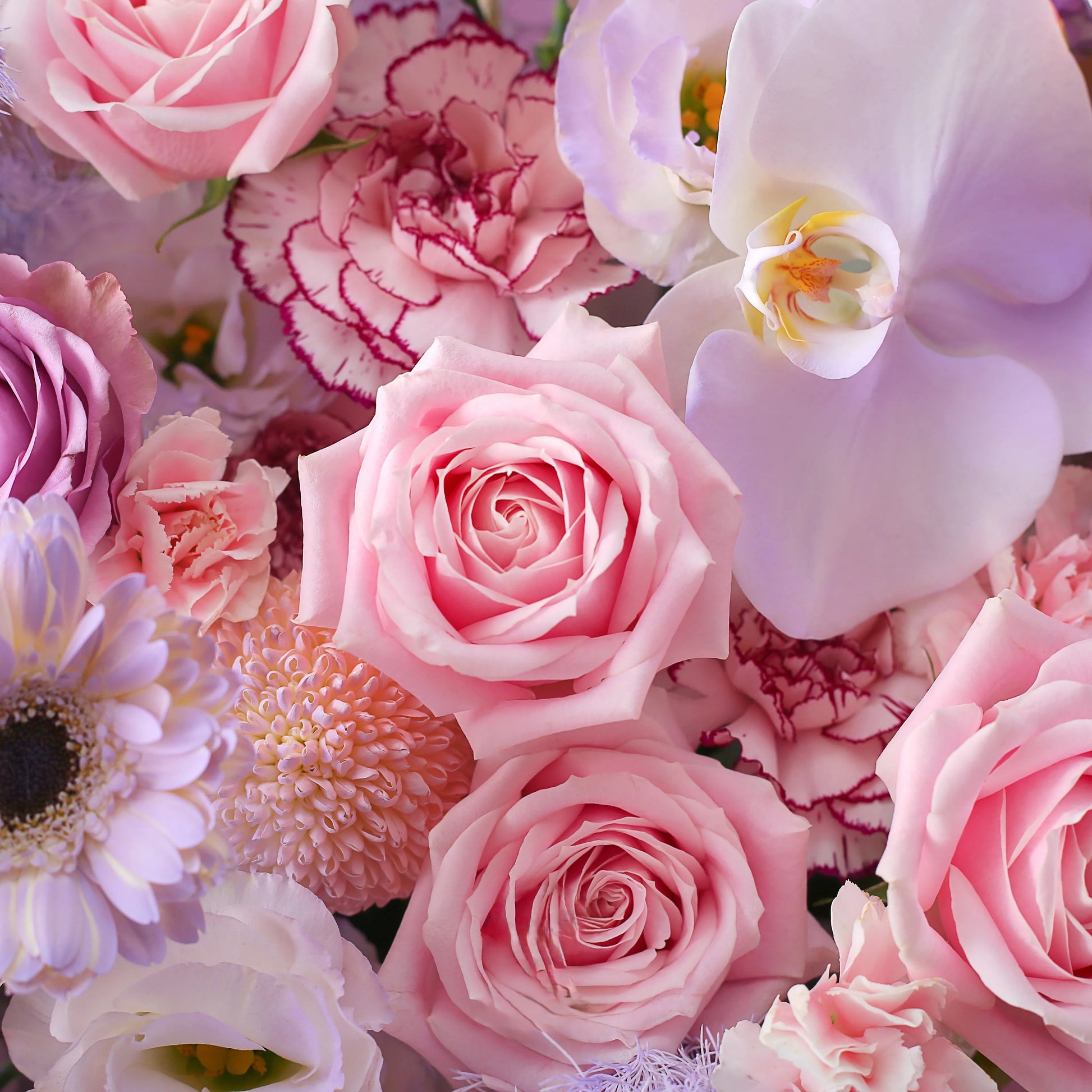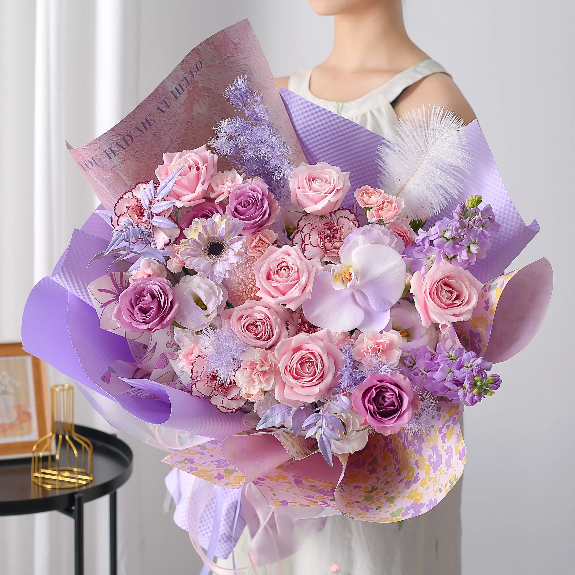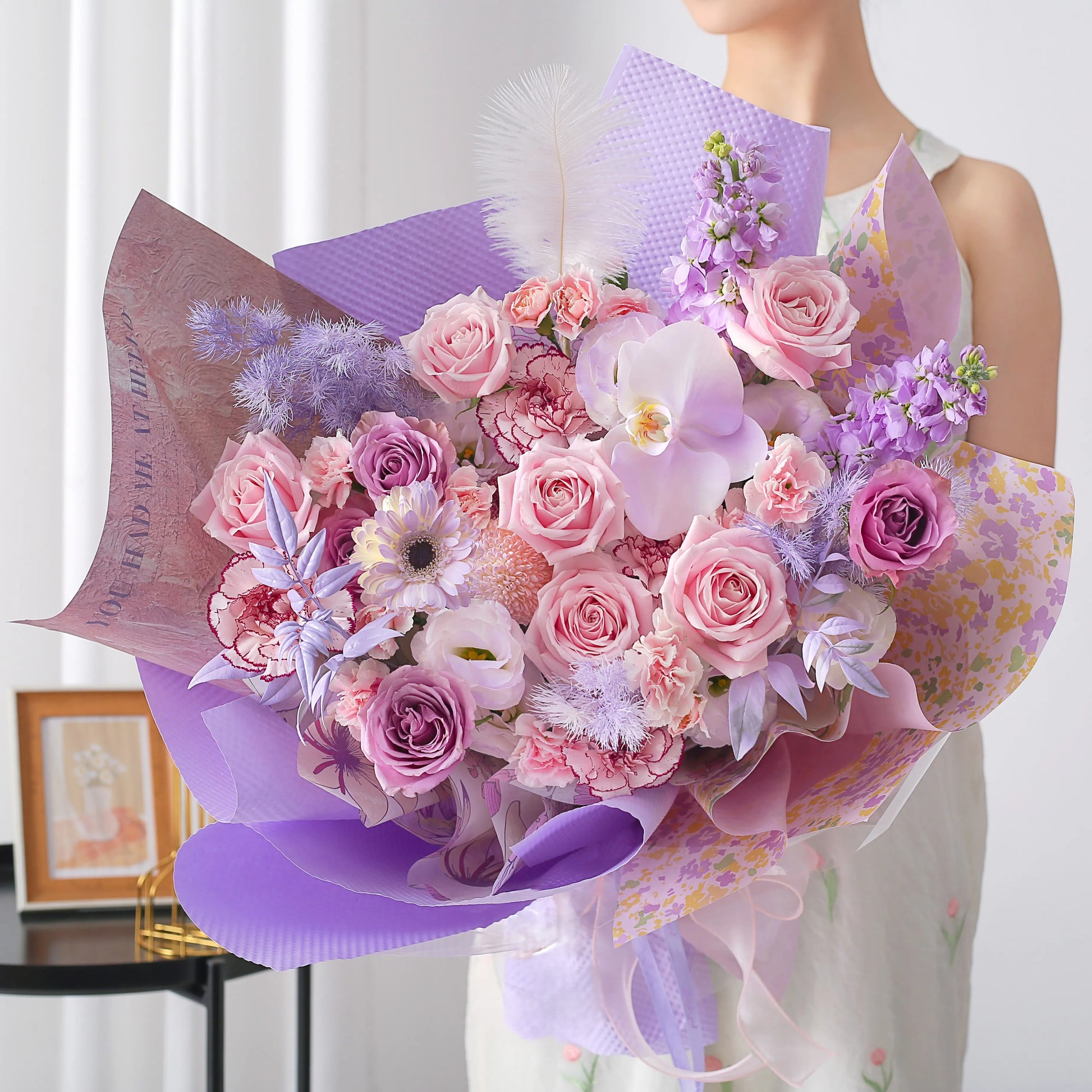 紫風輕語|紫玫瑰粉雪山玫瑰紫精靈蝴蝶蘭混搭鮮花束