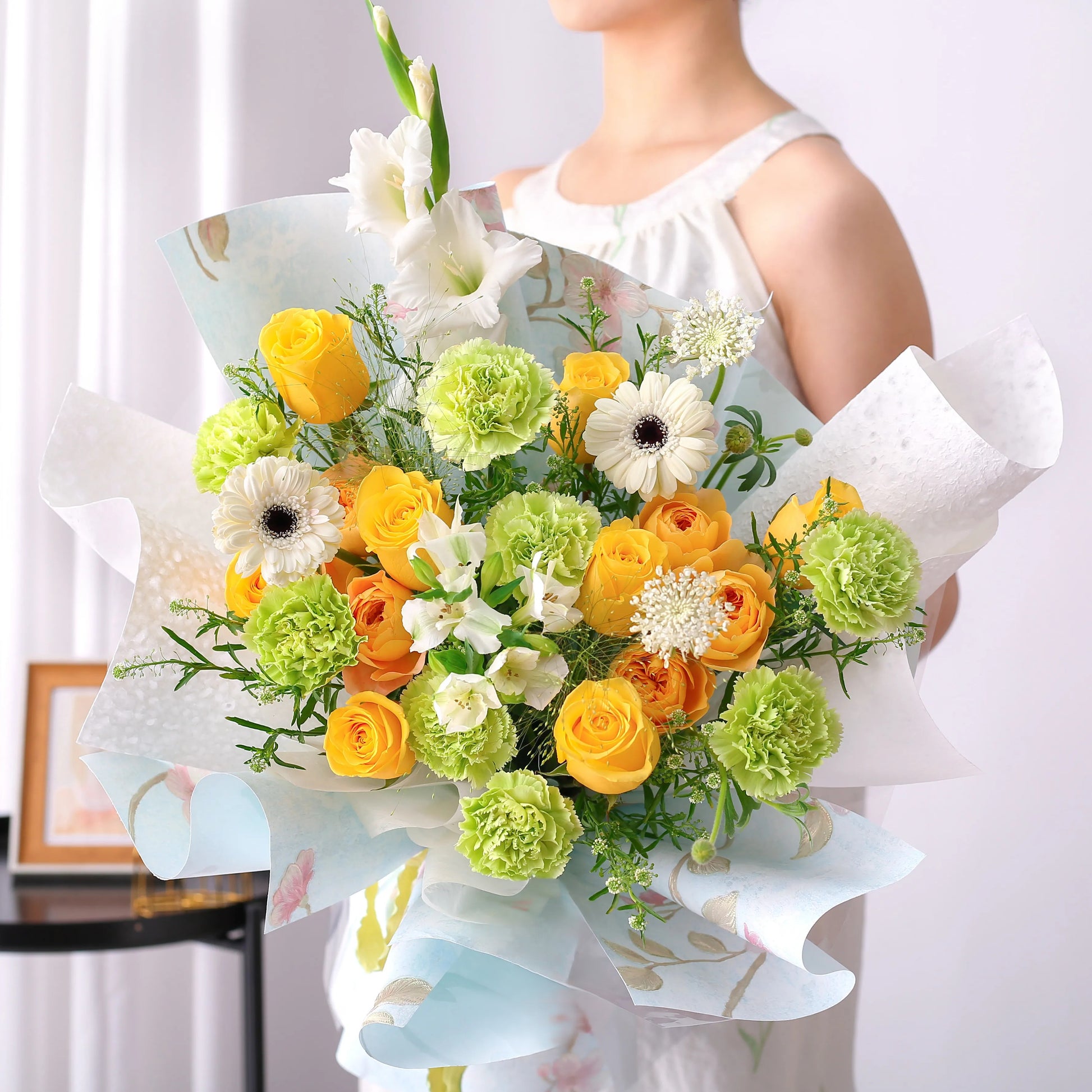 金枝玉葉|黃玫瑰弗朗劍蘭混搭鮮花束