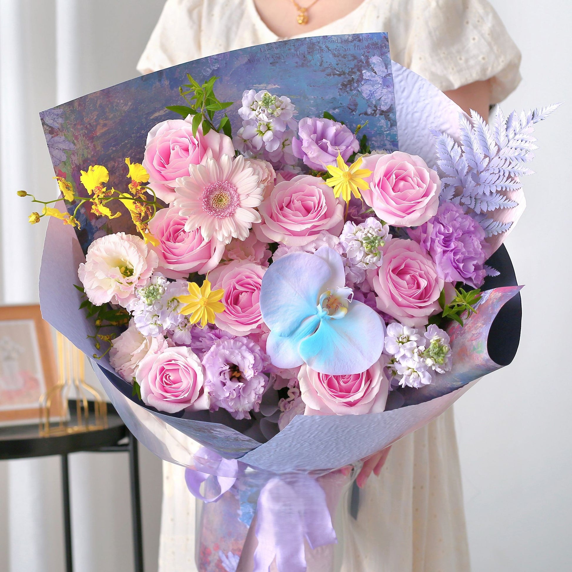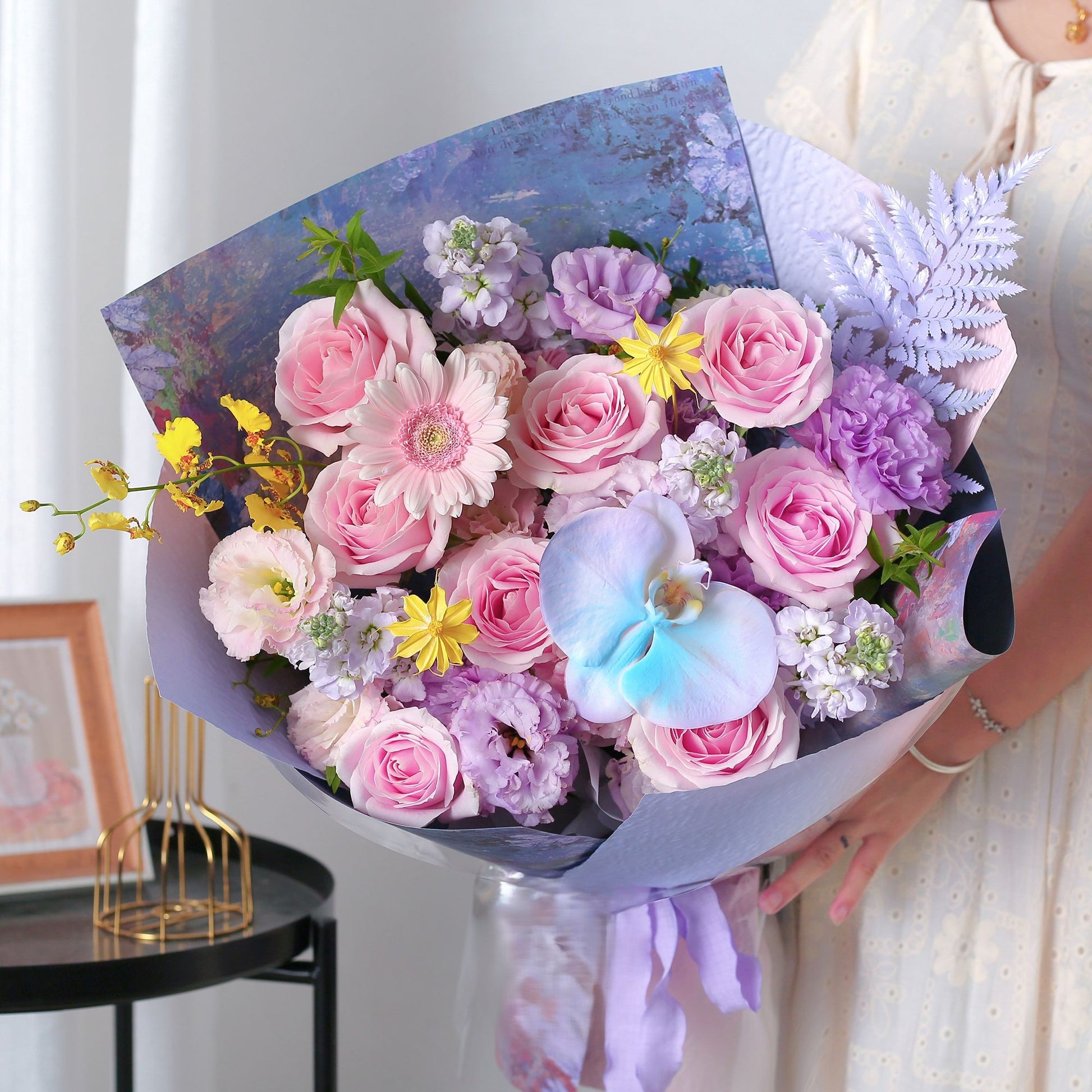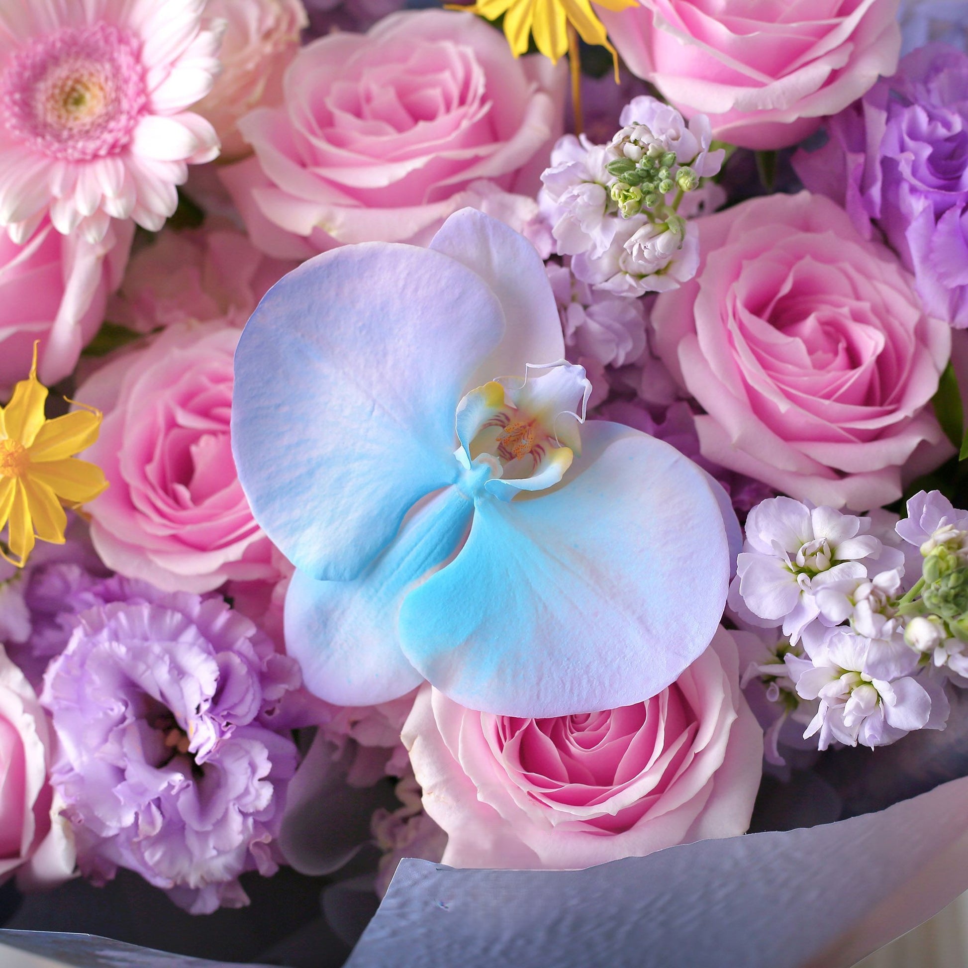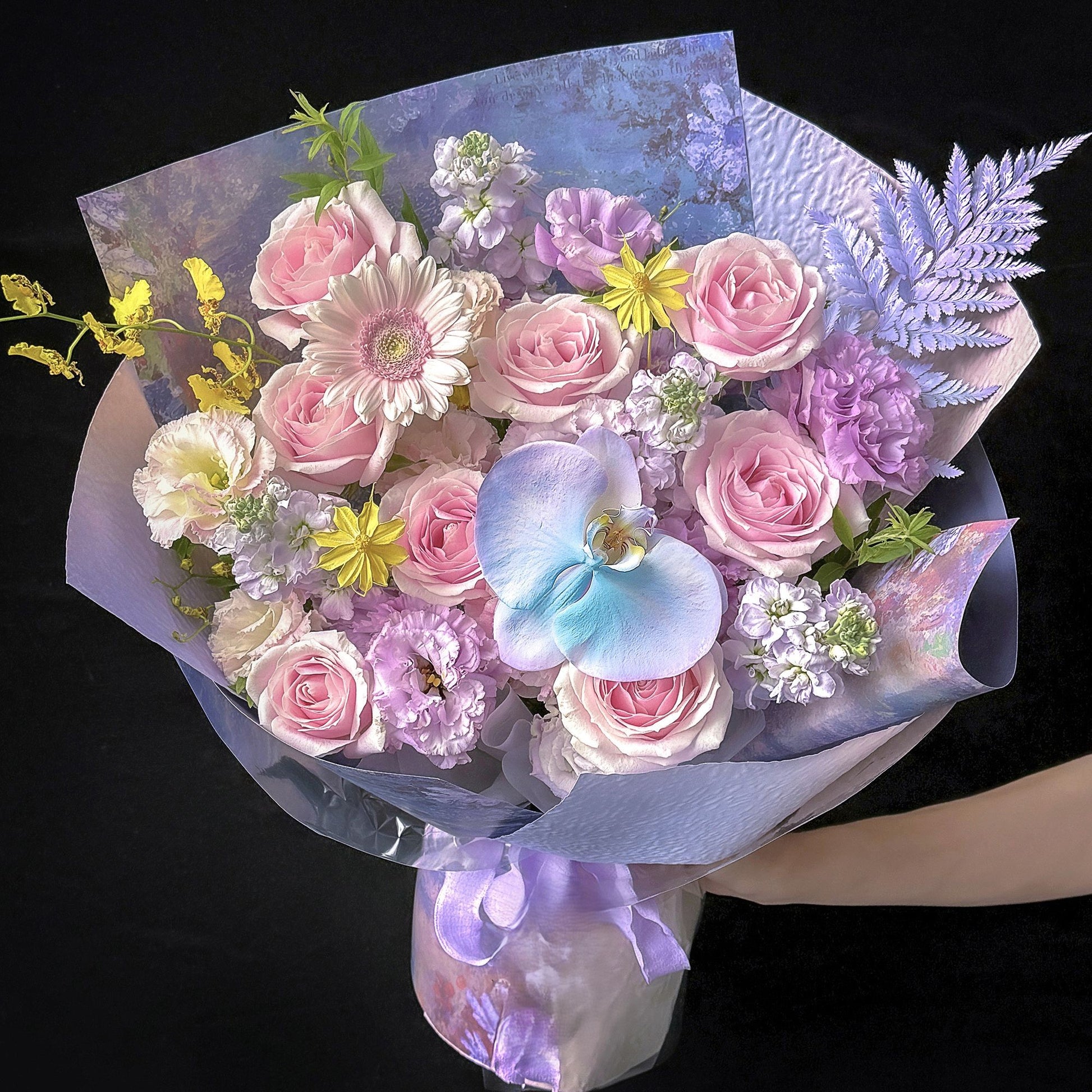 怦然心動|粉雪山桔梗蝴蝶蘭混搭鮮花束